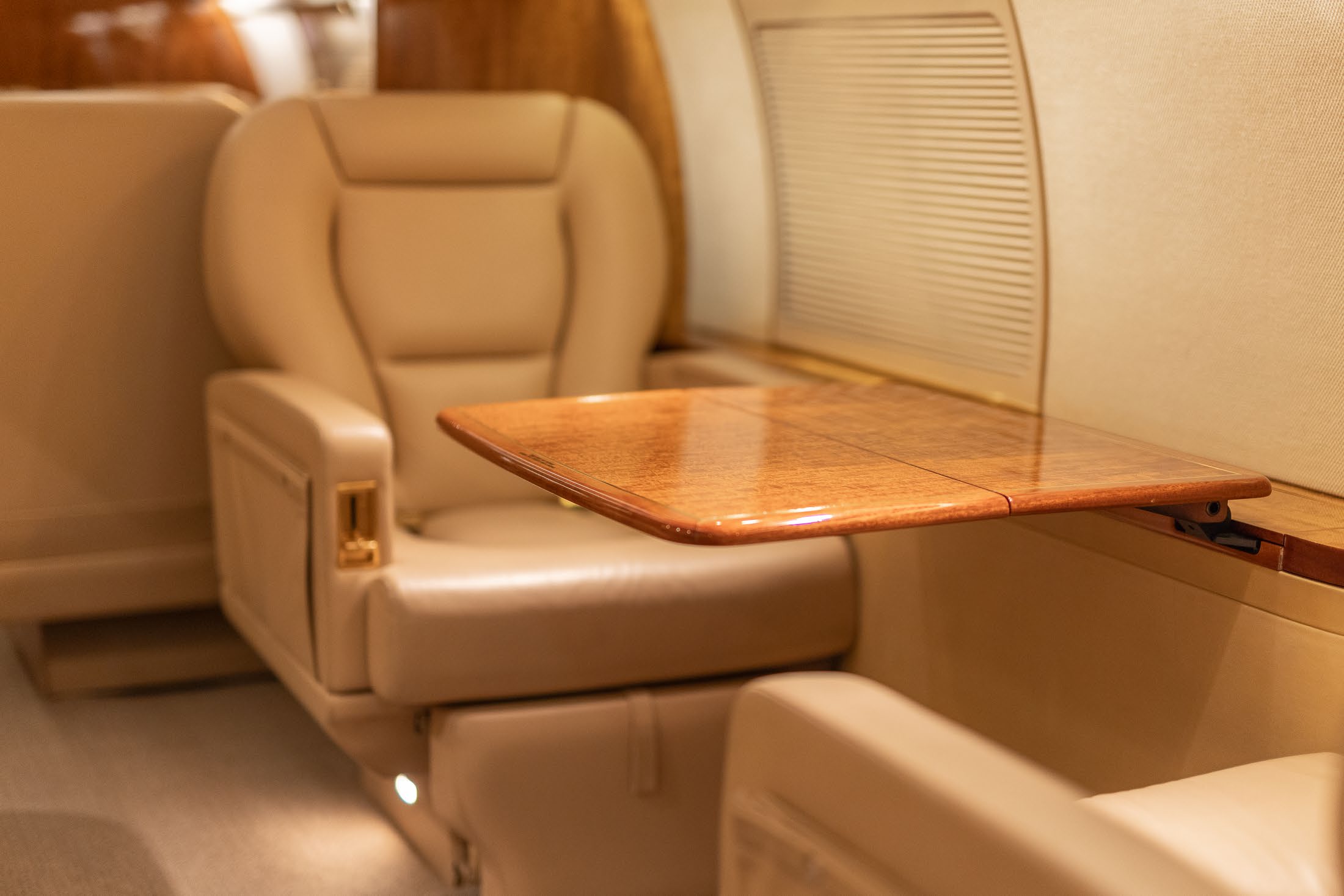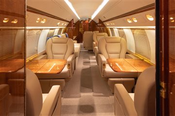 The beautiful thirteen (13) passenger interior was recently refurbished by Gulfstream Brunswick in 2022. The forward cabin includes a four (4) place club with fold out tables. The mid cabin of the aircraft has a three (3) place belted divan opposite two (2) club seats. The mid cabin divan was recovered with leather in 2024. The aft cabin includes a four (4) place conference grouping. The aircraft has an AFT galley and AFT lavatory |