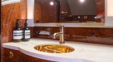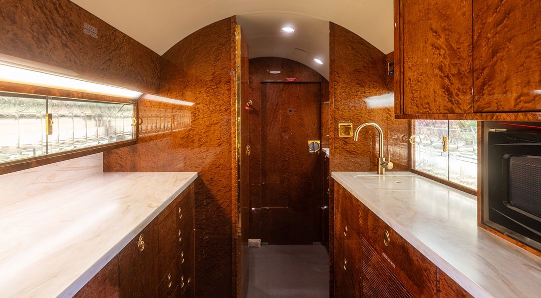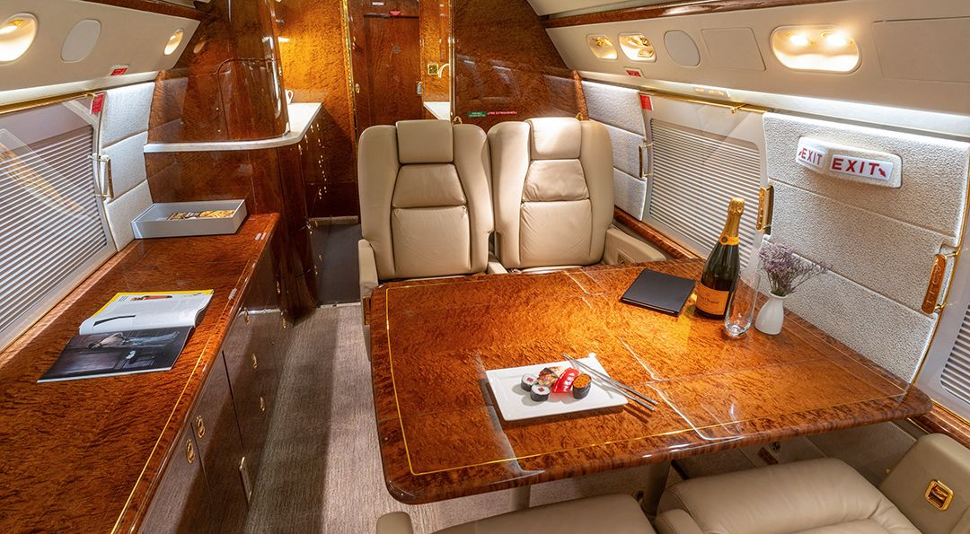 14 Passenger Interior Configuration Forward Crew Rest Area Forward Four Place Executive Club Seating Mid Cabin Four Place Divan Mid Cain Two Place Executive Club Seating Executive Tables Aft Four Place Conference Group Seating & Conference Table Aft Cabin Credenza Forward Refreshment Center/Galley Annex Dual Aft Well-Equipped Galleys w/ Galley to Cabin Curtain Forward Vestibule Crew Lavatory w/Coat Rod Full Aft Lavatory & Vanity Large Aft Baggage Birdseye Maple Veneer w/High Gloss Finish |