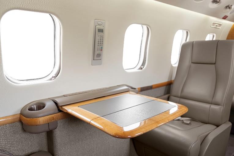 CABIN FEATURES LED Side Panel Cabin Lighting COMMUNICATIONS Aircell Flight Phone System (1) Wired Handset in cabin (1) Wired Handset in cockpit CAPABILITIES: ADS-B Out WAAS/LPV EGPWS BRNAV VNAV HF-9000 TCAS II 8.33 Spacing |