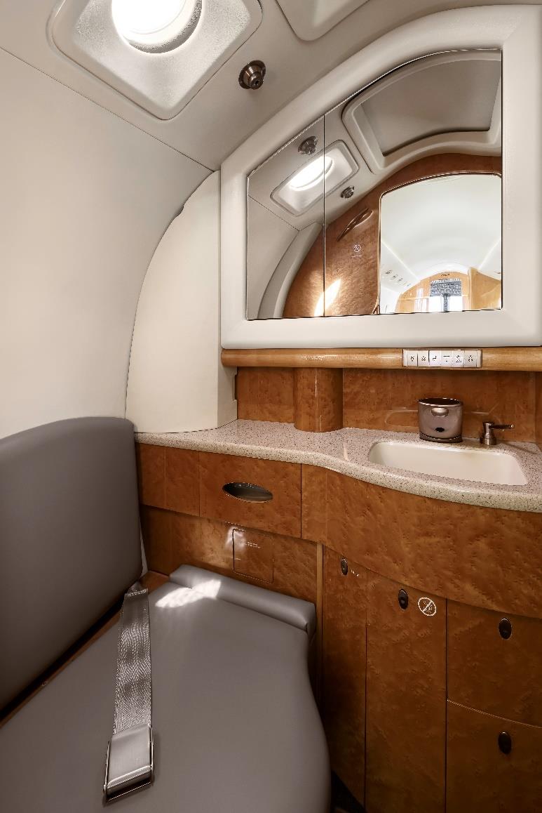 (Seat cushion and seatbacks refurbished January 2019 – Duncan, Lincoln) Beautiful Eight passenger cabin features a forward one-place divan with 4 place club followed by 2 forward facing seats in the aft cabin. In addition, the aircraft has an aft lavatory with a belted lav seat. FORWARD GALLEY DESCRIPTION Microwave Water Dispenser |
