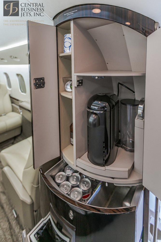 Configuration: 7 Passenger + 1 Belted Lav Seat Featuring a forward RH side facing seat followed by a 4 place club and 2 aft forward facing seats All new veneer and soft goods in 2018 by JBS Interiors Four 110V outlets, six USB outlets, LED lighting Galley: Forward right hand side refreshment center with microwave, left hand side storage cabinet with coffee maker Lavatory: Aft belted lavatory w/ sink & pocket door |