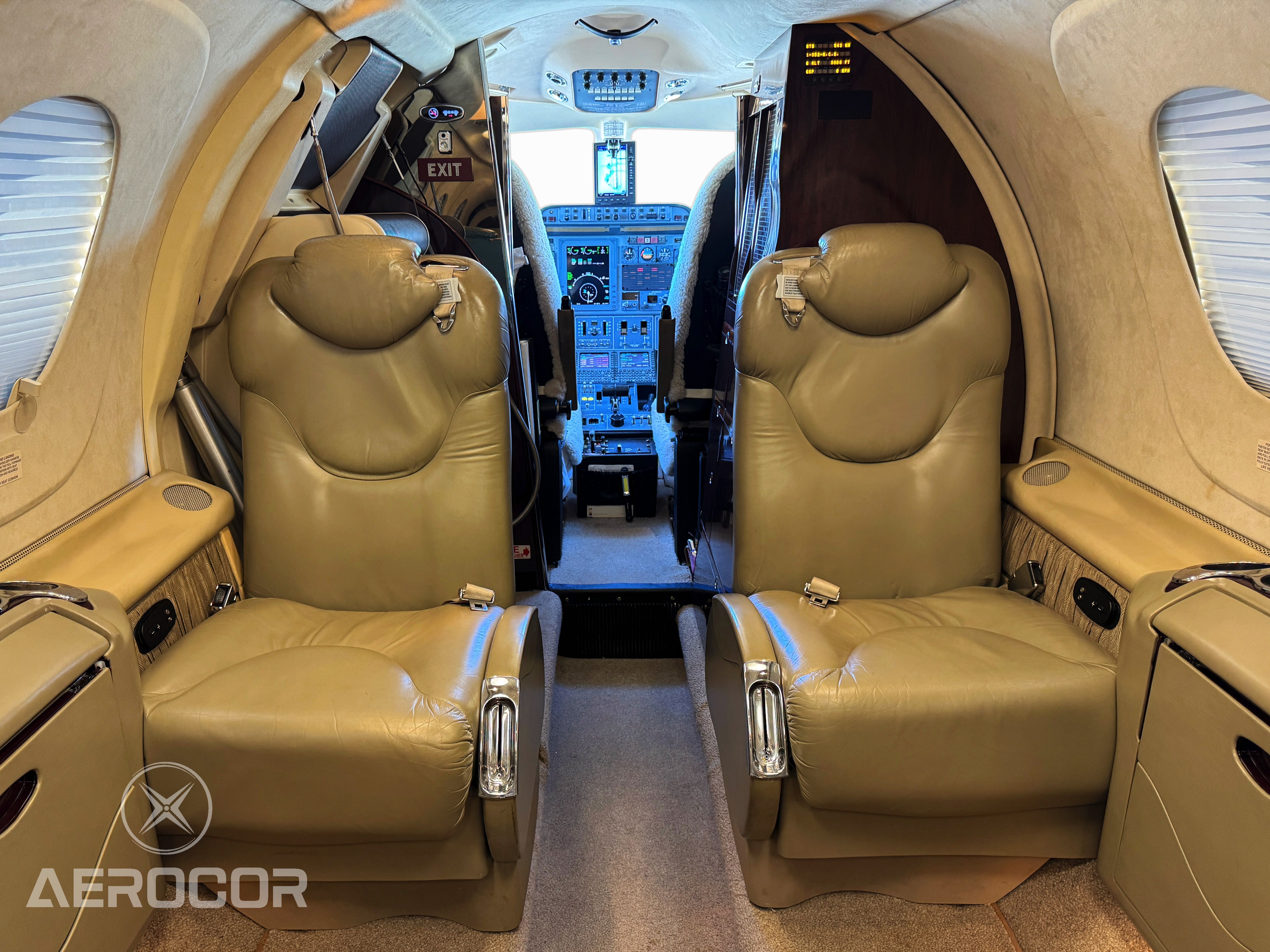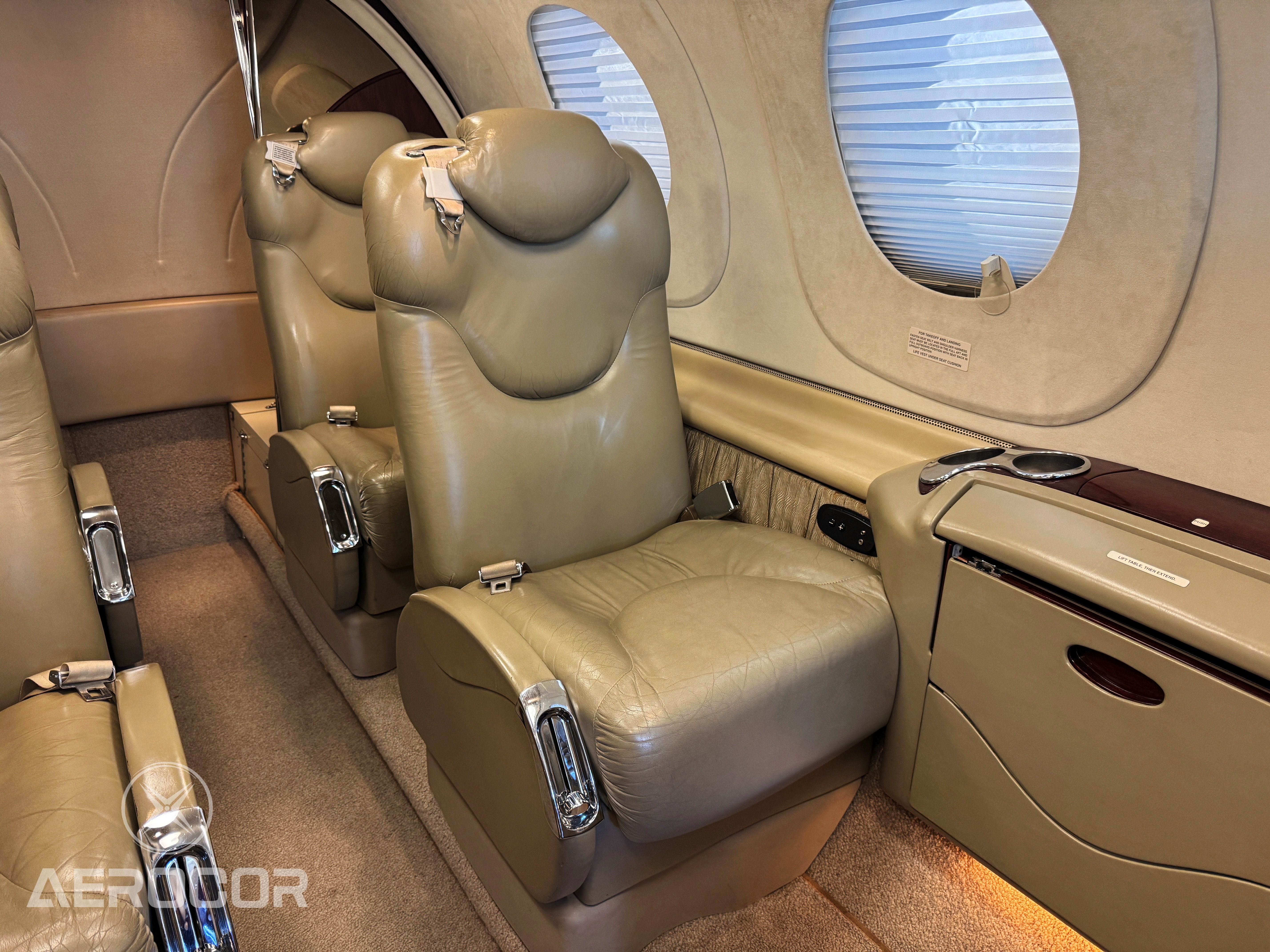 6 pax interior FWD extended galley w/entertainment system 2 foldout executive writing tables Aft flushing lavatory Max Occupants 8 PEOPLE |