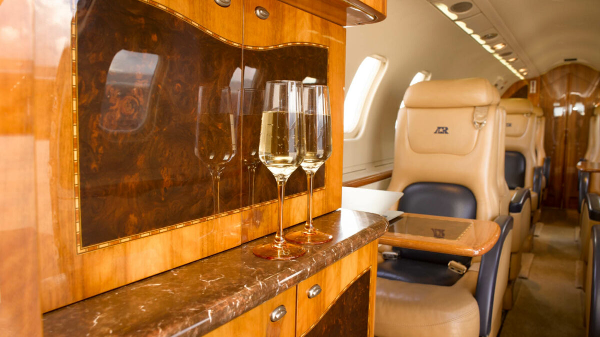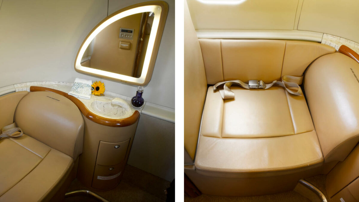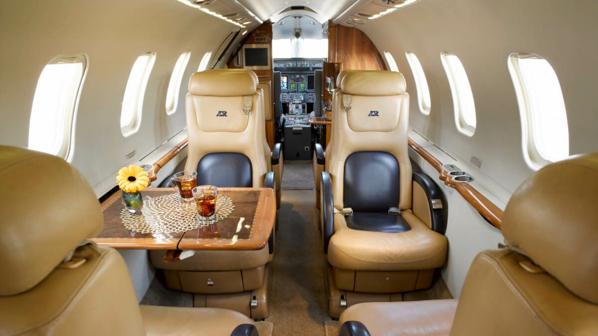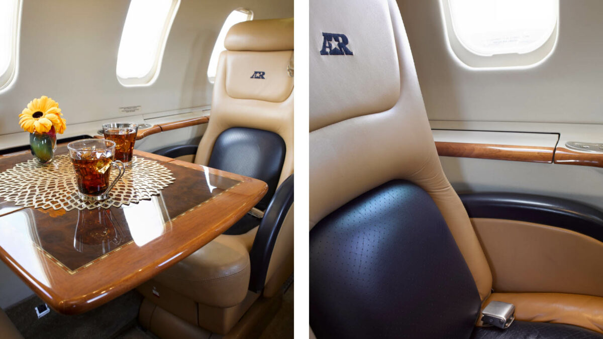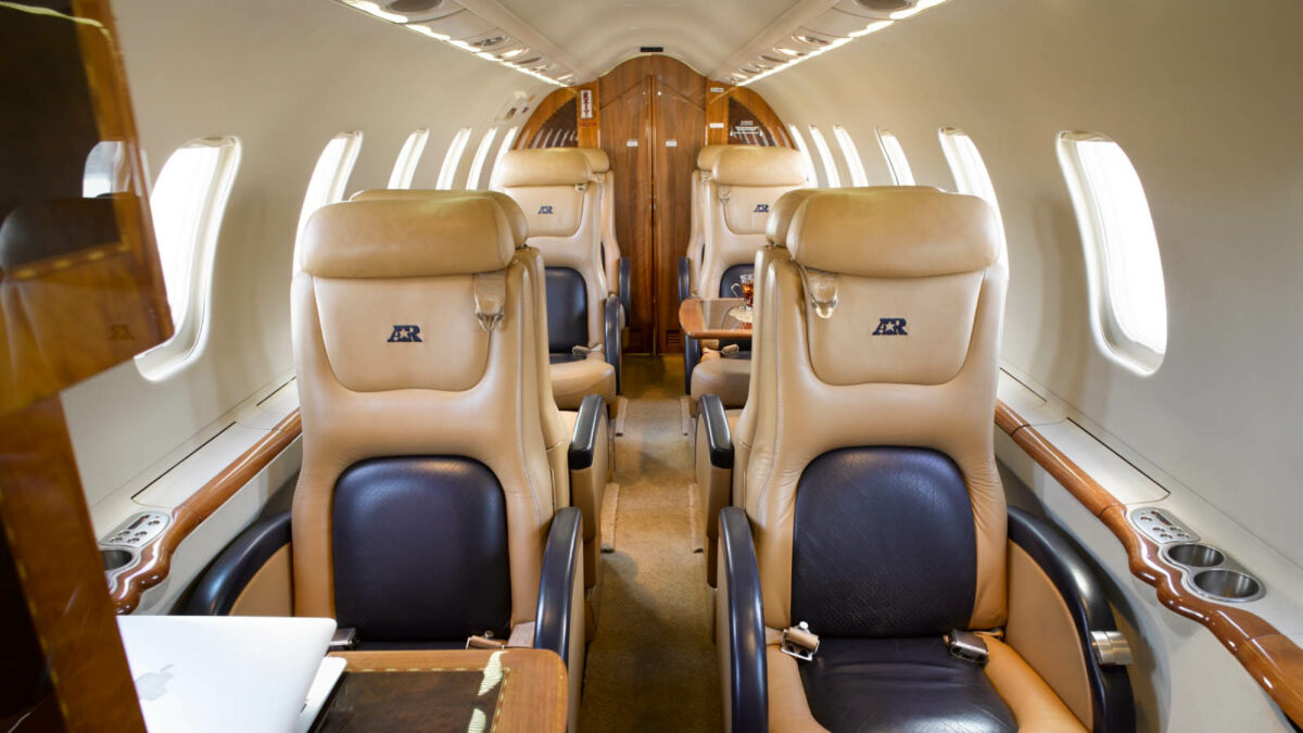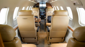 NINE (9) PASSENTER EXECUTIVE INTERIOR CENTER CLUB W/ EXECUTIVE WRITING TABLES AFT TOW (2) FWD FACING SEATS AFT BELTED LAVATORY WITH SOLID PRIVACY DOORS AND VANITY SINK FORWARD RH GALLEY W/ MICROWAVE HIGH GLOSS WOODWORK AIRSHOW 400 SYSTEM FWD 10” MONITOR |