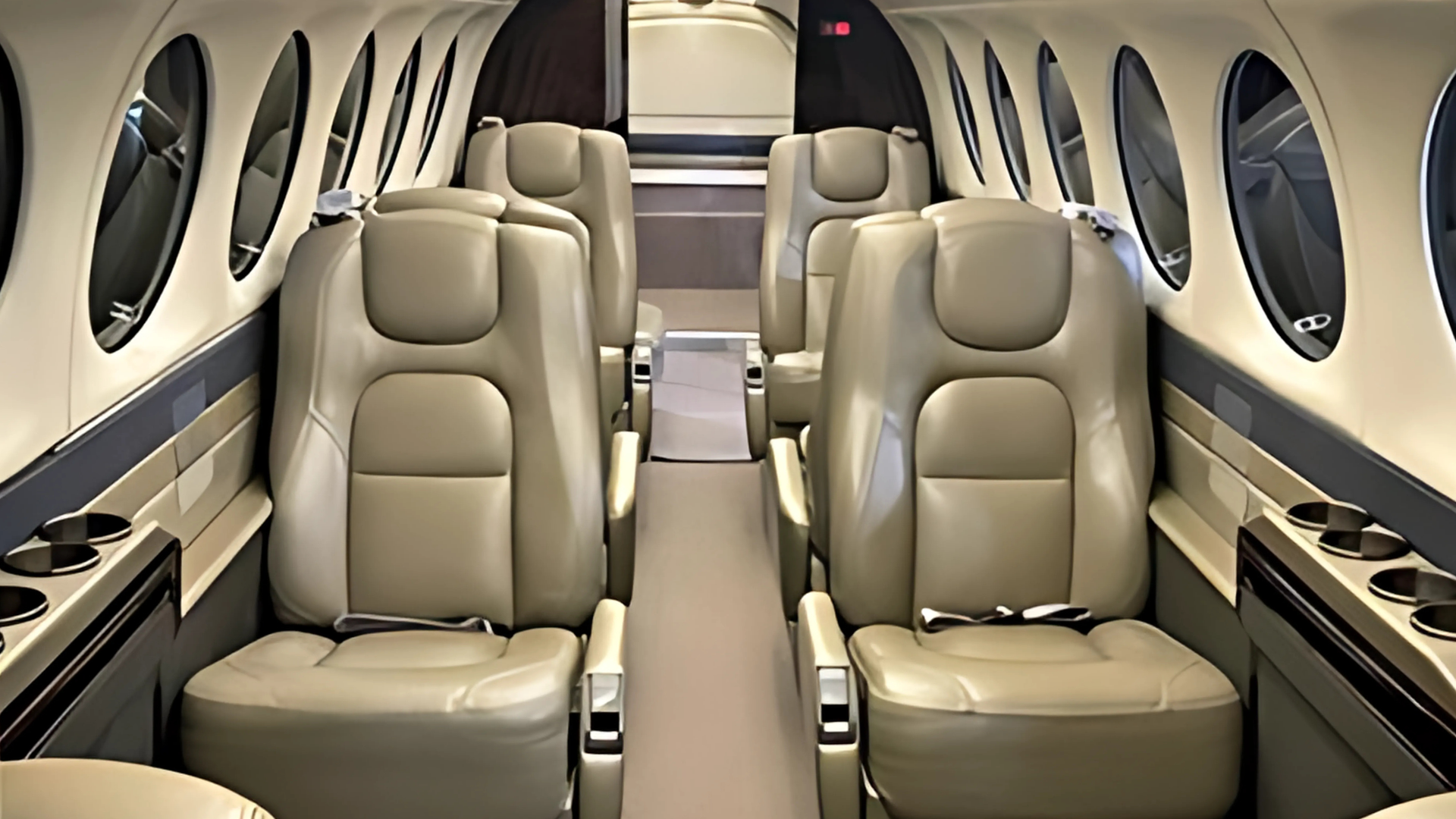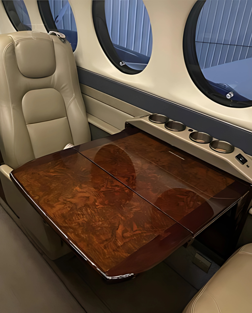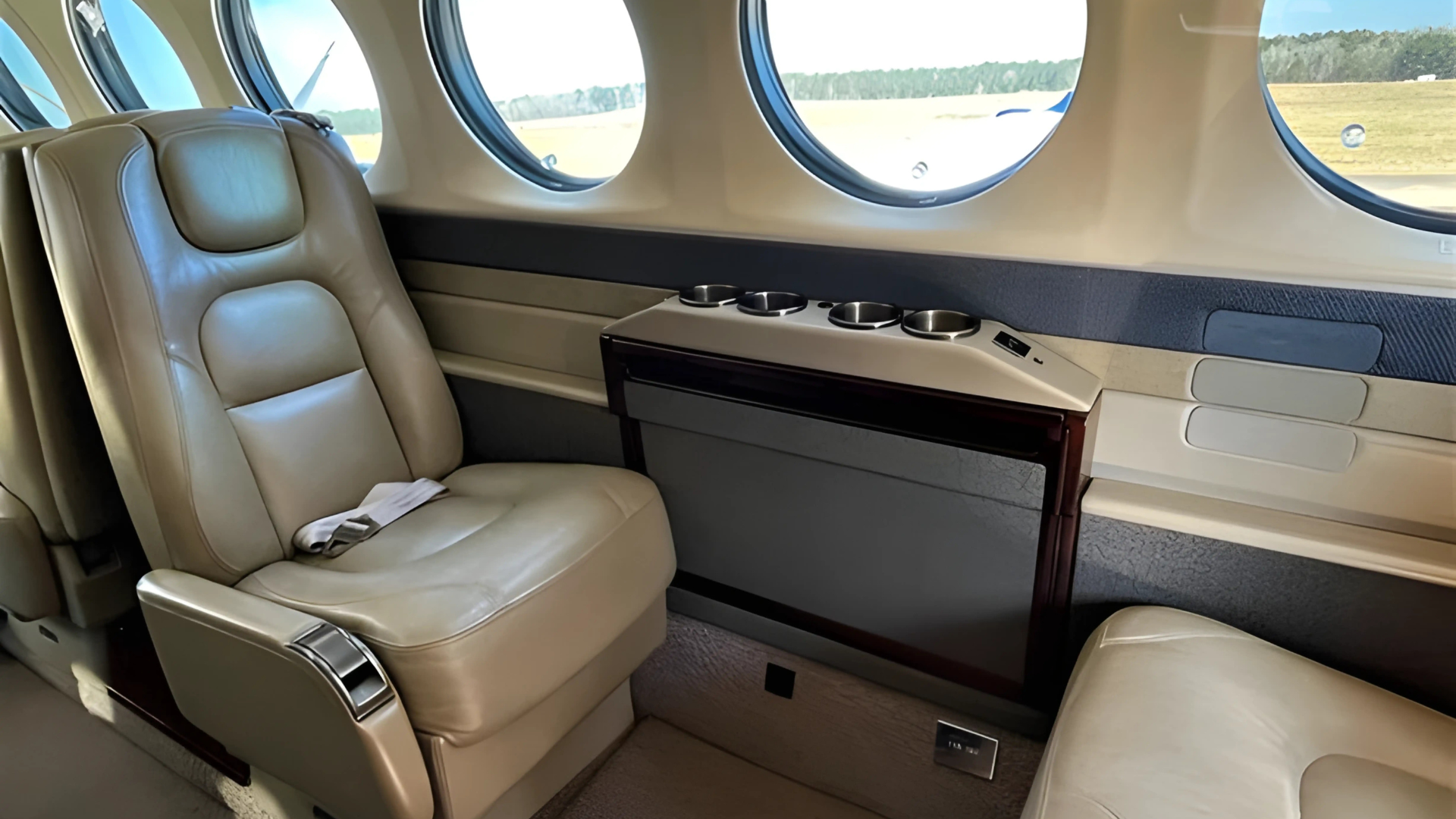 In Average Condition (New in 2010 by Elliott Aviation) Finished in tan leather seats and tan carpet. Executive Interior (1+10 Seats) |