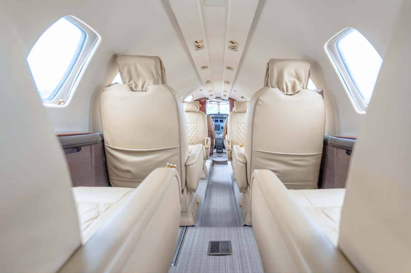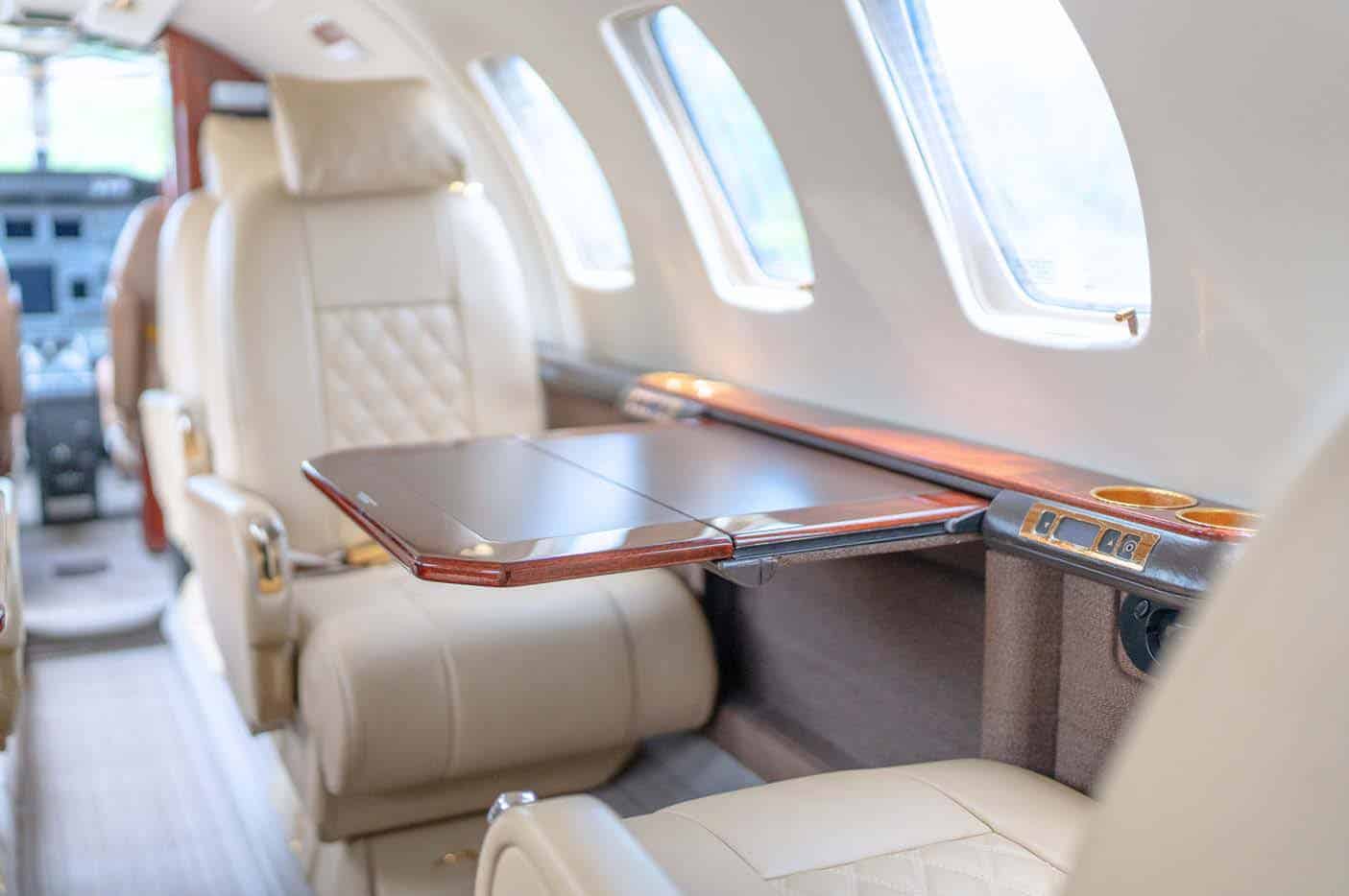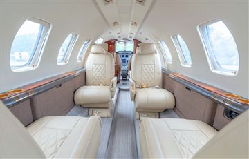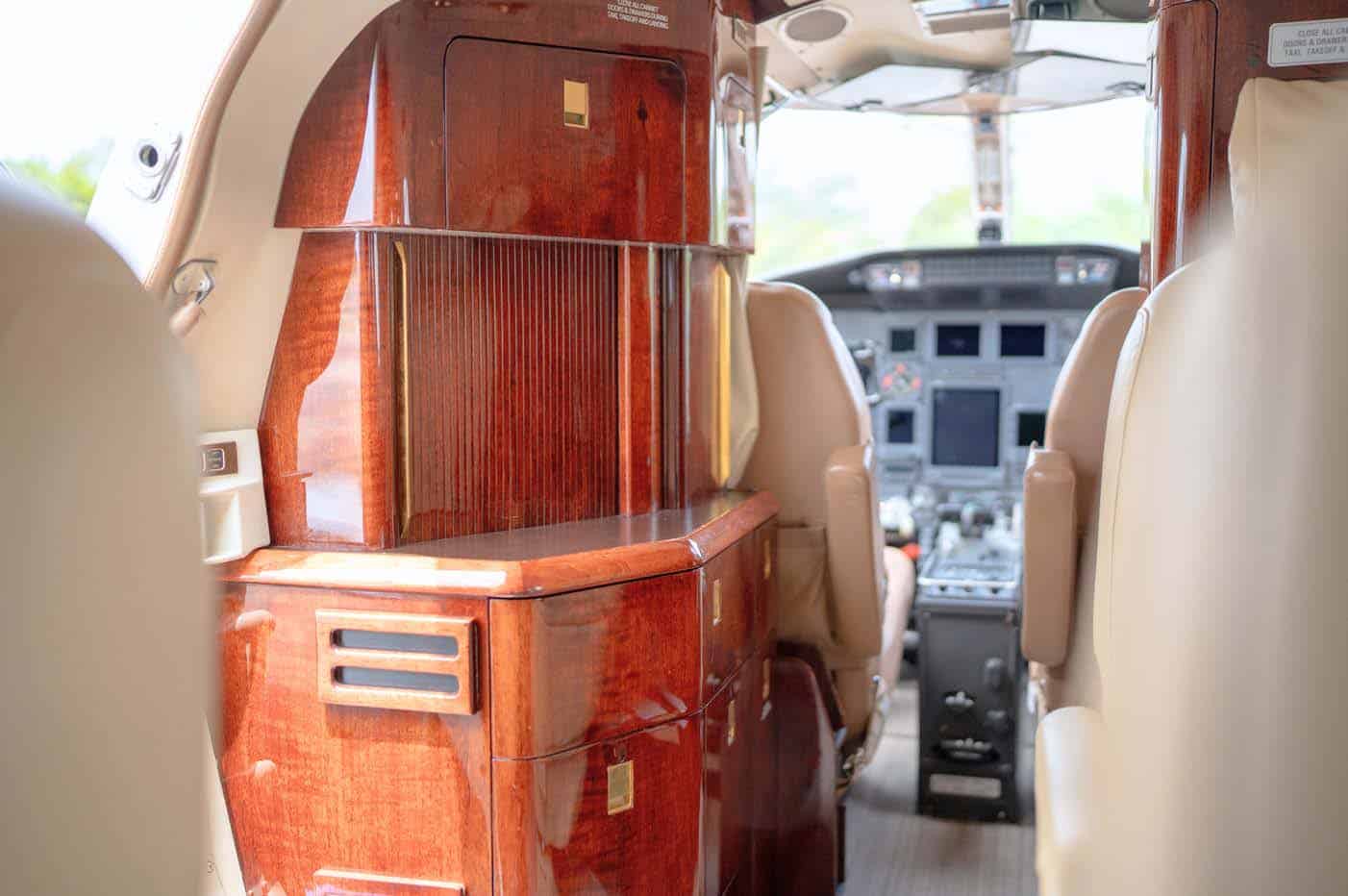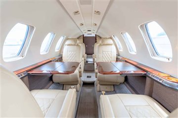 Executive/8 passengers Beige interior Forward aft-facing seat, mid-cabin 4-place club, dual aft forwardfacing seats Forward left side refreshment center w/coffee pot Walnut burl wood veneer cabinetry B&D 2700 cabin display 110-volt AC outlets Private belted aft lav w/sink CABIN SPECIFICATIONS Passenger capacity: 7 Executive Passengers + 2 Pilots Overall cabin length: 17.0 ft 11 in (5.18 m) Cabin height: 5 ft 0 in (1.52 m) Cabin width: 5 ft 0 in (1.52 m) |