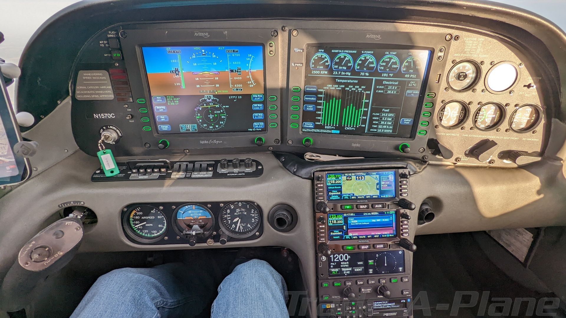 Avionics: 4 Place Intercom ADS-B In Weather and Traffic with aural traffic alerts Stormscope Avidyne DFC90 Digital Autopilot Avidyne Entegra Primary Color Flight Display (PFD) Avidyne E-TAWS Terrain Awareness with altitude callouts (500, 400, 300....) Avidyne FlightMax EX5000C Multi-Function Color Display (MFD) Dual Avidyne IFD440 Touch screen with SynVis CMAX Chart View Electronic Approach Plates EMAX Engine and Fuel Monitoring Enhanced Ground Proximity Warning System (TAWS-B) Flight Director L-3 Avionics Lynx NGT-9000 ADSB IN and OUT PMA8000B Audio Panel Upgrade 4 Place Intercom, Stereo, Sat Phone interface, and XM Music |