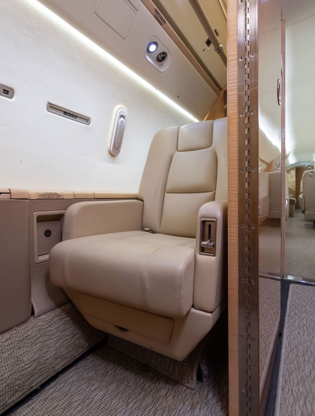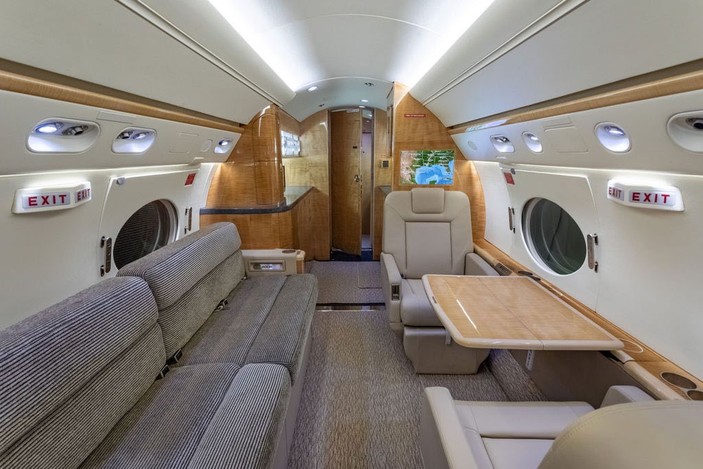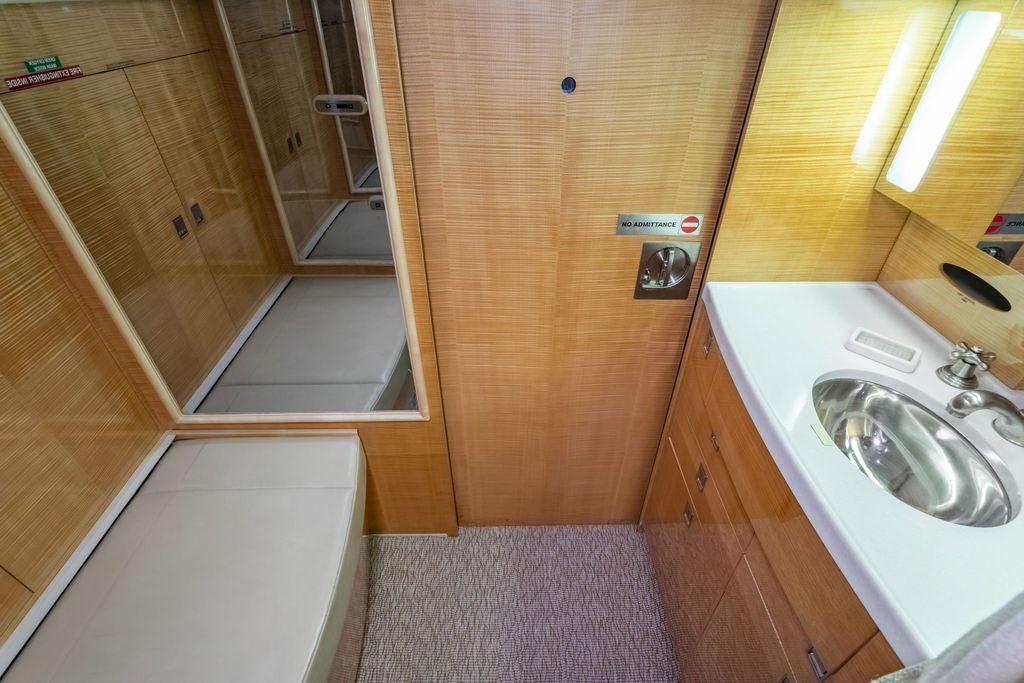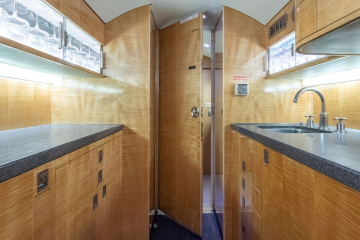 (Interior Refurbishment completed in 2019 by Gulfstream, St. Louis) (Cabin Seats always covered) This beautifully appointed (14) fourteen-passenger cabin offers (3) three distinct seating areas, complemented by a forward crew rest, a dedicated crew lavatory, and a spacious aft galley Forward Vestibule: Forward crew closet / storage area. Forward Crew Lavatory and Forward Crew Rest Area. Forward Cabin: Forward area features 4-place club seats. Mid Cabin: 4-place berthable conference group on the left opposing a right-side credenza. Aft Cabin: 4-place right-side divan and left-side 2-place berthable club. Galley: Full size Aft Galley includes a Microwave Oven, High-Temperature Oven, and a food Chiller. AFT GALLEY DESCRIPTION High Temp Oven Microwave Oven Chiller |