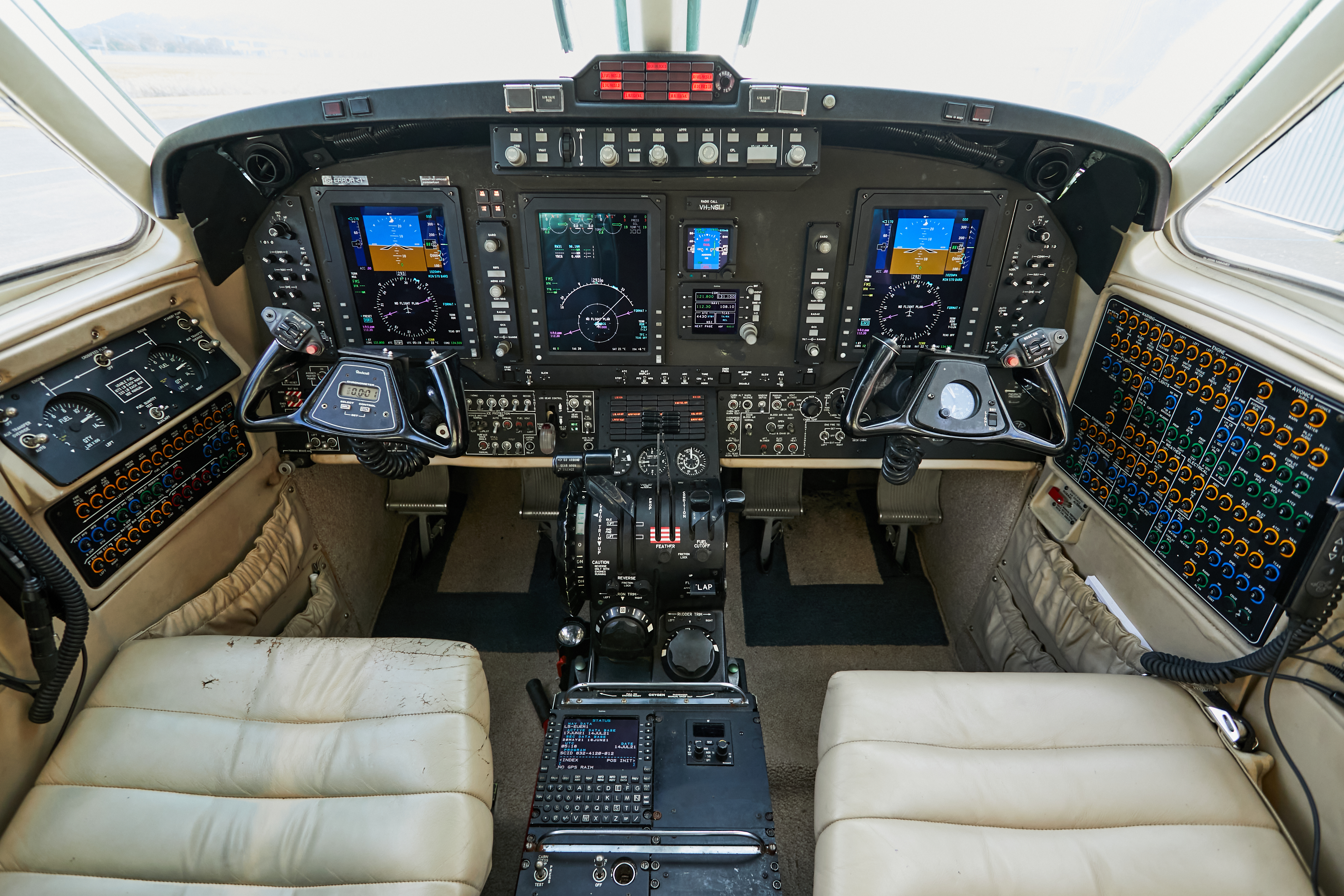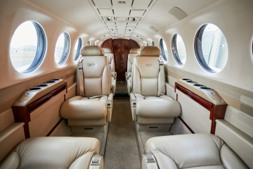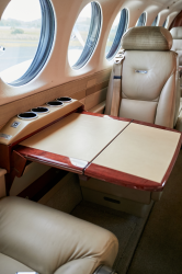 Collins Pro Line 21 Avionics System Collins radios with dual COM, dual NAV, dual audio control panels, single DME and dual TDR-94 Mode S Transponders Collins TWR-850 Turbulence Detection Weather Radar Single Collins FMS-3000 L-3 Communications Skywatch TCAS 1 L-3 Communications FA2100 Cockpit Voice Recorder Honeywell Mark VIII EGPWS (TAWS A) Artex ELT 110-4 RVSM Capable Collins ALT-4000 Radio Altimeter MDC-3000 Maintenance Diagnostic Computer L-3 Communications GH-3100 ESIS CABIN: Cabin seating for eight with Right side facing belted toilet Ultra-Quiet Noise Control System Left-hand forward refreshment center Mid-Cabin Pyramid Cabinets Right-hand aft belted flushing toilet Four executive tables 110 / 115V AC outlets |