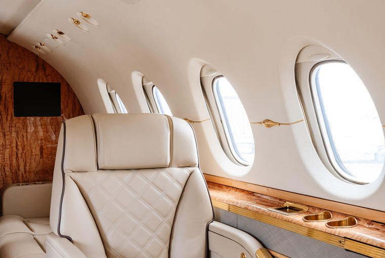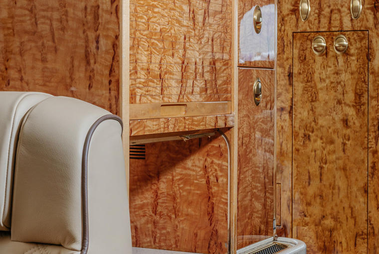 Complete Interior Refurbishment 2022, including Skandia Cabin Soundproof Upgrade Configuration/PAX: Executive/9 passengers Seating: Tan leather seating, mid-cabin 4-place club, aft forward-facing executive seat opposite 3-place divan Carpet: Lightly patterned neutral carpeting Refreshment: Forward galley w/microwave Cabinetry/Wood: High-gloss wood veneer cabinetry, dual aft foldout executive tables Entertainment: Rockwell Collins Airshow 400, DVD & CD player w/dual 13-inch LCD displays Business: ATG-5000 WiFi w/Talk & Text Accessories: 115-volt AC outlets Lavatory: Enclosed belted aft lav w/vanity |