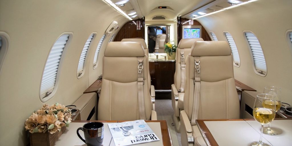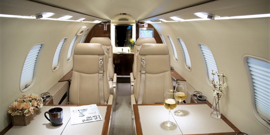 Seven Passengers Executive Standard Configuration (6 cabin seats plus 1 belted lavatory seat) Executive Club Seats with four fold-out tables Forward Galley Aft Lavatory (belted) External Baggage Compartment 2018 Partial Interior Refurb |