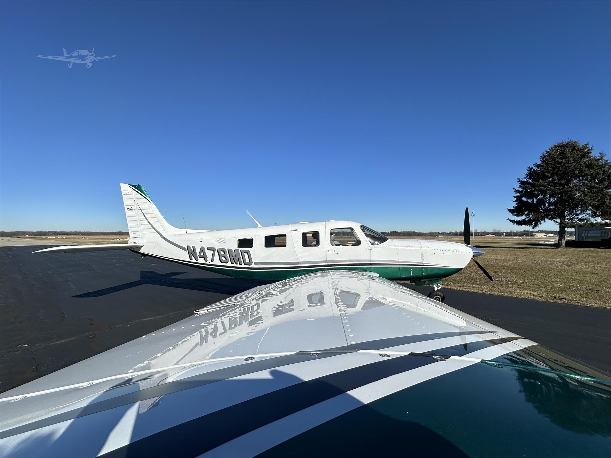 Snow White over Green Metallic Featuring Slate Grey and Silver Metallic Accents. The aircraft is kept in a hangar when not flown. |