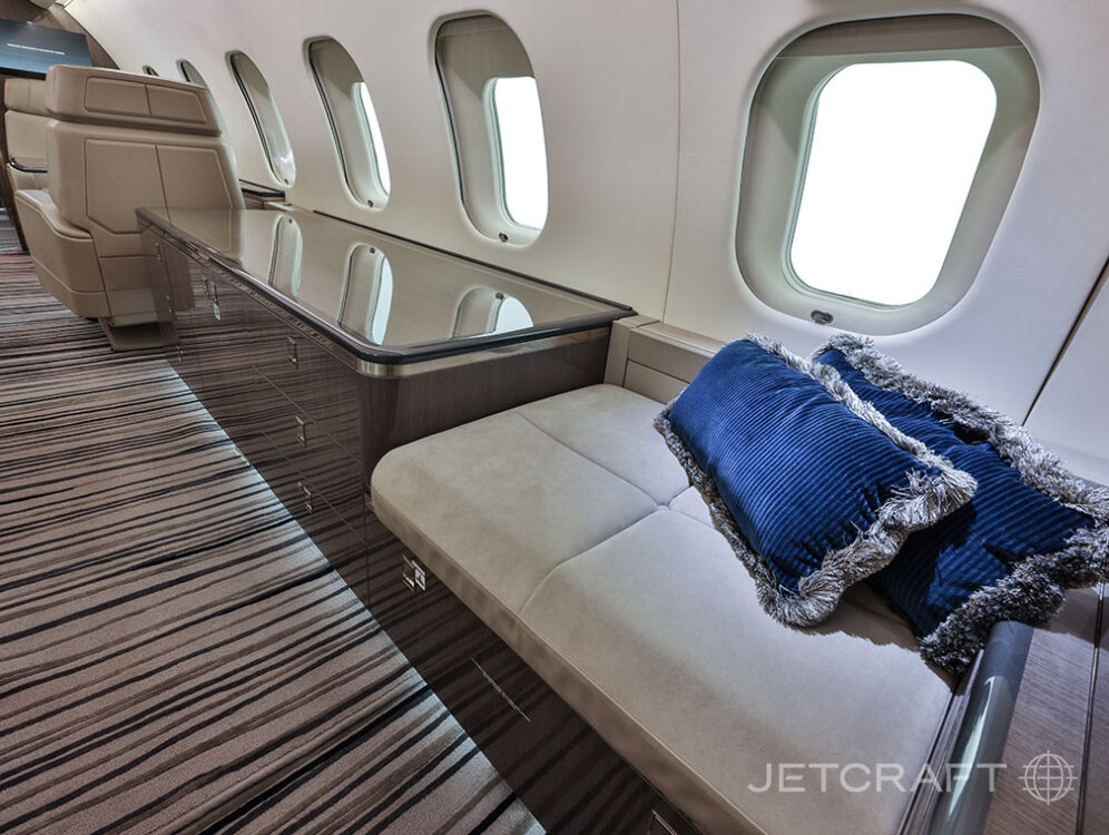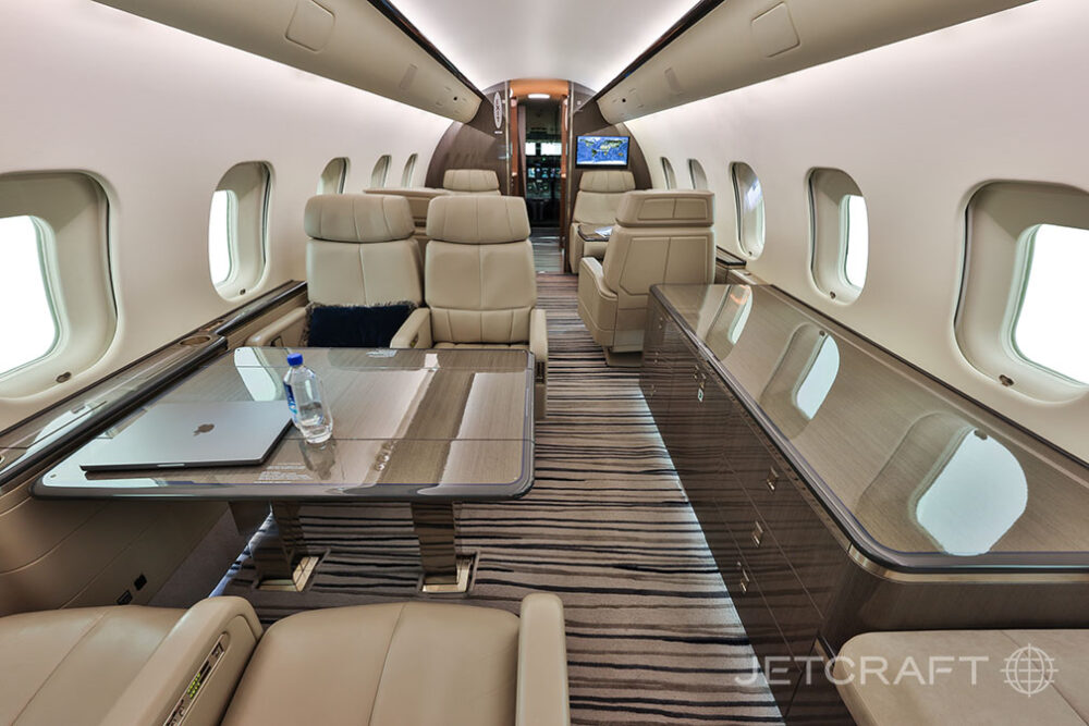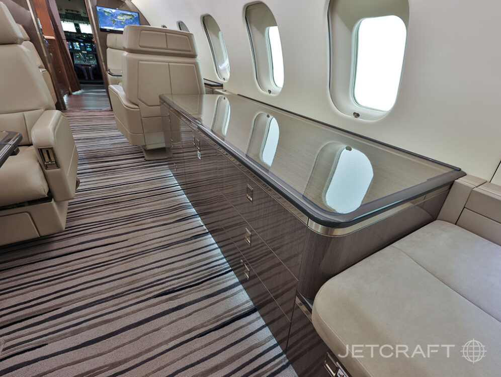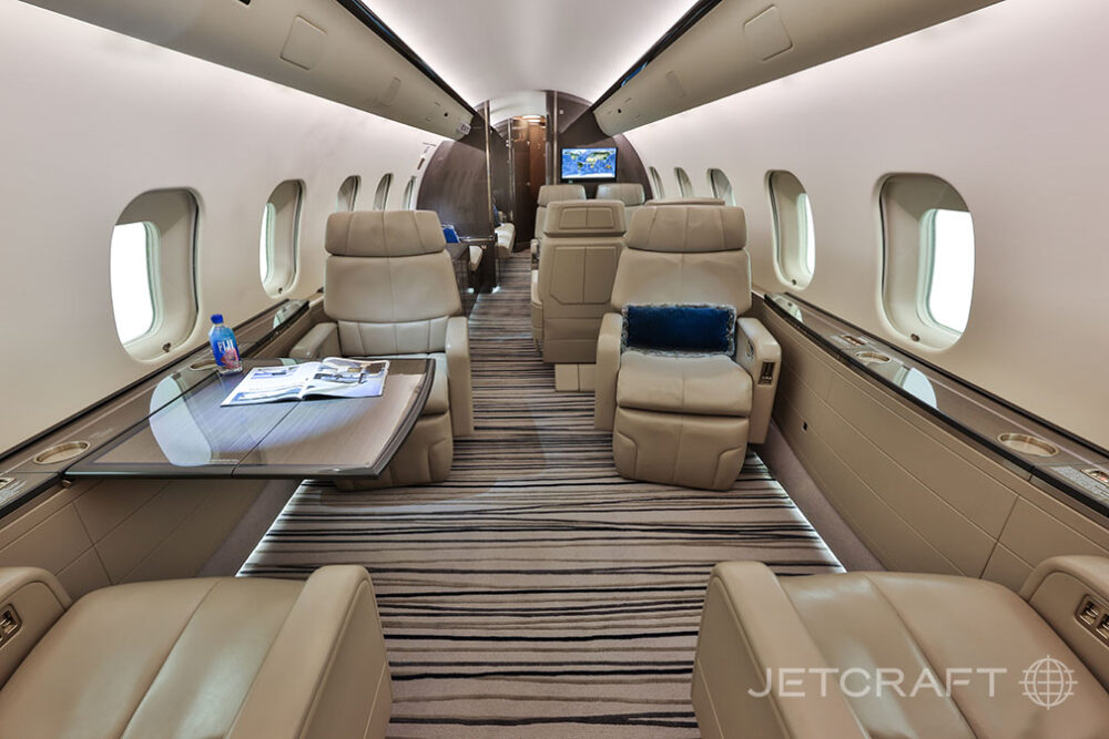 Number of Passengers - Thirteen (13) Galley Location - Forward Forward Cabin Configuration - Four (4) Place Club Mid Cabin Configuration - Four (4) Place Conference group opposite a Credenza Aft Cabin Configuration - Two (2) Place Club opposite Three (3) Place Divan Lavatory Location(s) - Forward and Aft Galley Equipment - Hi-Temp Oven; Microwave Oven Refurbishment - Refurbished in 2016 including new Wood Veneer and LED Lighting |
