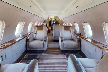 Capacity Passengers: Up to 13 General information Bombardier Completion, October 2006 Fireblocked Twelve/thirteen (12/13) passengers plus one (1) jumpseat for crew only Galley Fwd right side galley features an espresso coffee maker, sink, tray cooler, chilled area and ice drawer Fwd left side galley annex features a high-temp oven and microwave Forward cabin Four (4) executive club seats Two (2) foldout tables Mid cabin Four (4) seats in LH conference group Conference table RH credenza with storage 18" pop up monitor and entertainment equipment Aft cabin Aft cabin features two (2) executive seats and fold-out table on RH side and a three (3) place divan on RH side (divan limited to 2 passengers with midcabin divider installed) Lavatory Also featured is a fwd crew lavatory and aft full lavatory |