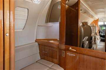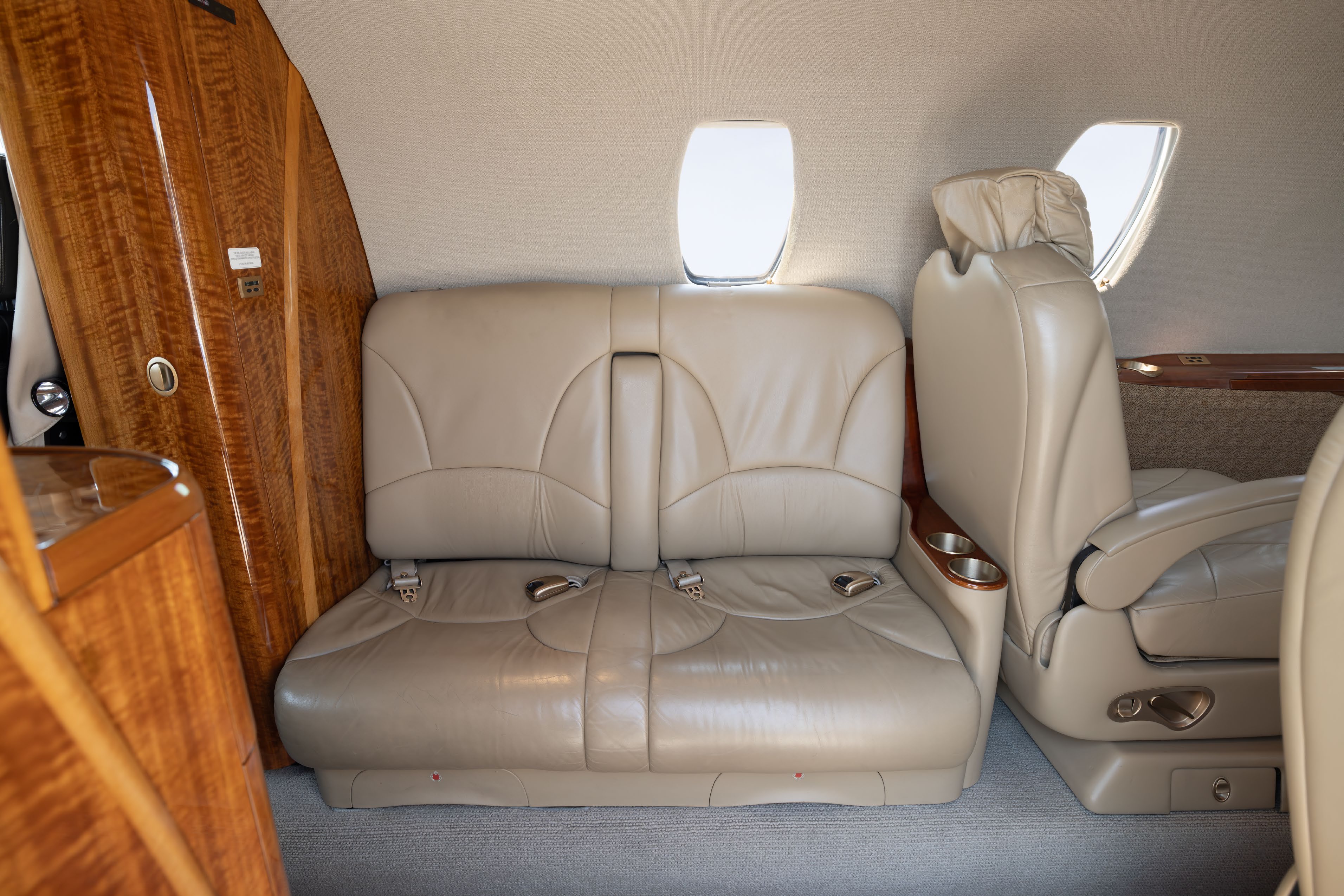 (2019 Interior Refresh) This elegant nine-passenger interior features a forward twoplace divan and a four-place club arrangement in the forward cabin, followed by two forward-facing seats. The aircraft is also equipped with a belted lavatory. A partial interior refreshment was completed in 2019, which included resurfaced cabinetry, new carpeting, and deep cleaning and refurbishment of the passenger seats. |