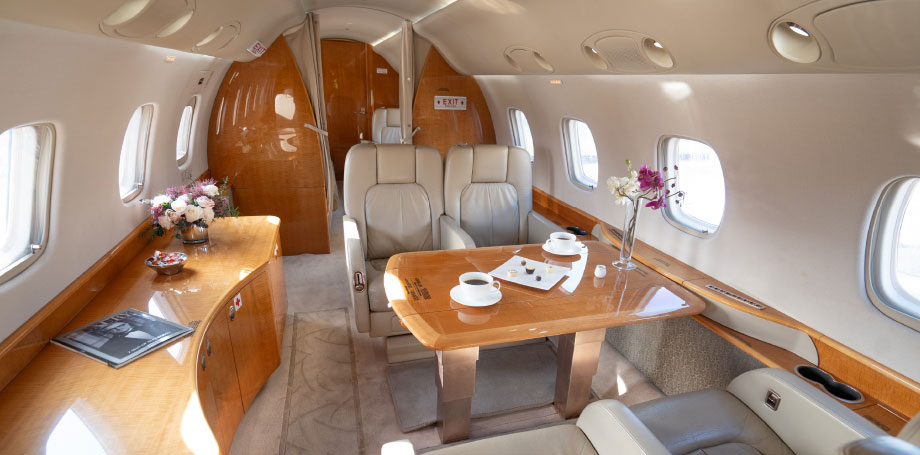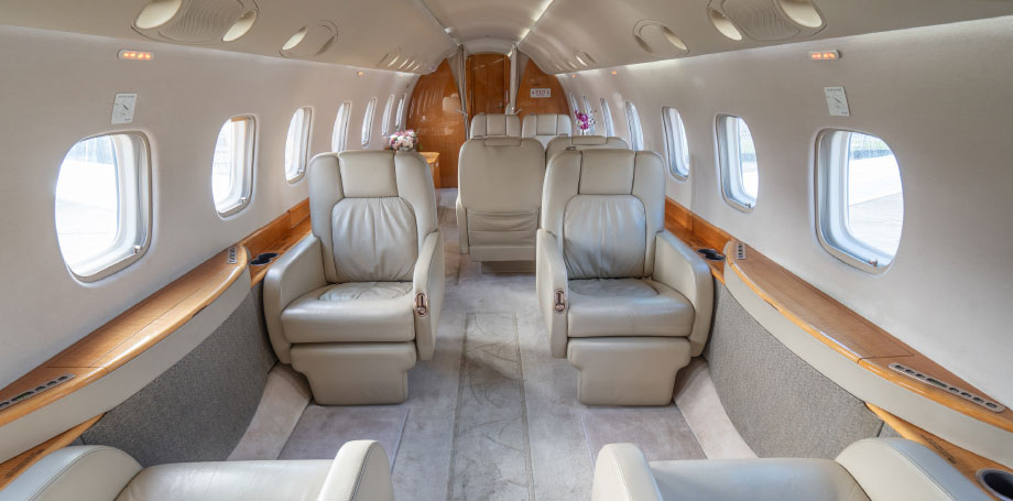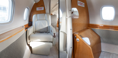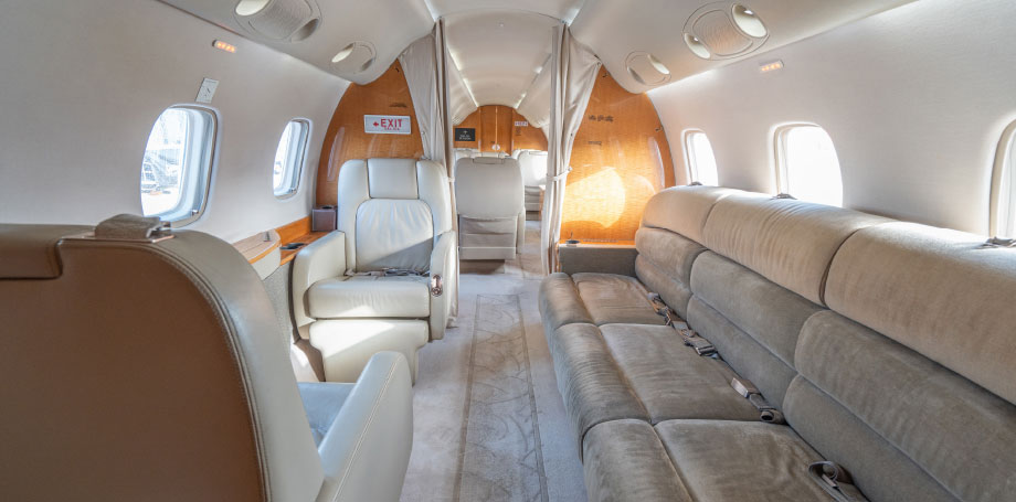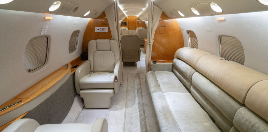 Number of Passenger Seats: Thirteen (13) Forward Cabin Configuration: Four (4) Club Seats Mid Cabin Configuration: Four (4) Place Conference Group opposite Credenza Aft Cabin Configuration: Two (2) Club Seats opposite Three (3) Place Divan Lavatories: Forward and Aft |