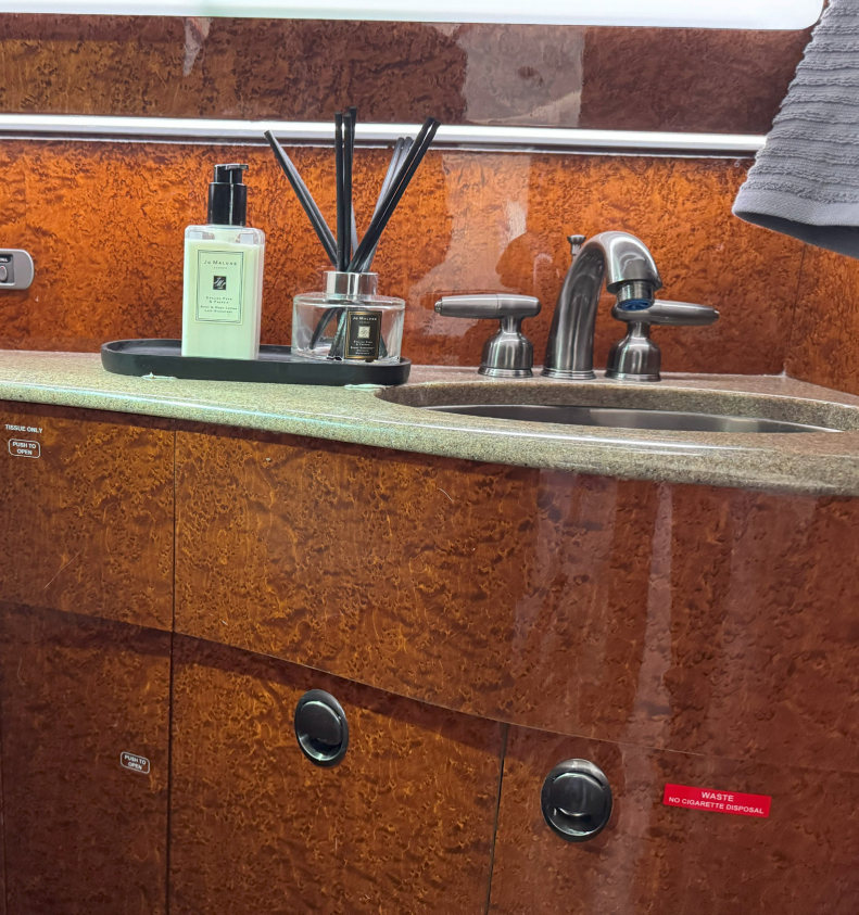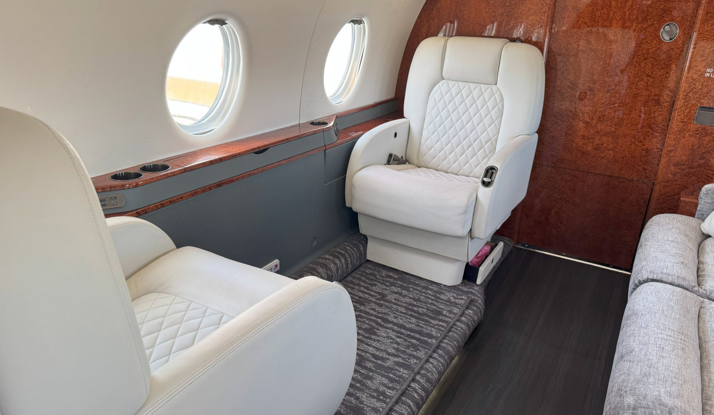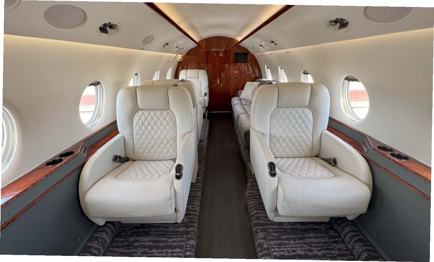 NUMBER OF PASSENGER SEATS: Nine GALLEY LOCATION: Forward FORWARD CABIN CONFIGURATION: Four-place Club AFT CABIN CONFIGURATION: Two-place club opposite, three-place divan LAVATORY LOCATION(S): Aft INTERIOR REFURBISHMENT: 2022 JUMPSEAT: Yes |