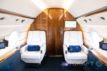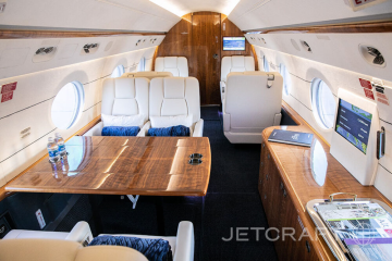 Number of Passengers - Sixteen (16) Galley Location - Forward Forward Cabin Configuration - Four (4) Place Club Mid Cabin Configuration - Four (4) Place Conference Group opposite a Credenza Aft Cabin Configuration - Dual Four (4) Place Divan Lavatory Location(s) - Forward and Aft Crew Rest - Forward Galley Equipment - Oven; Microwave Oven; Coffee Maker Last Refurbished Date - 2023 (Carpet, Seat Leather and Divan Fabric) |