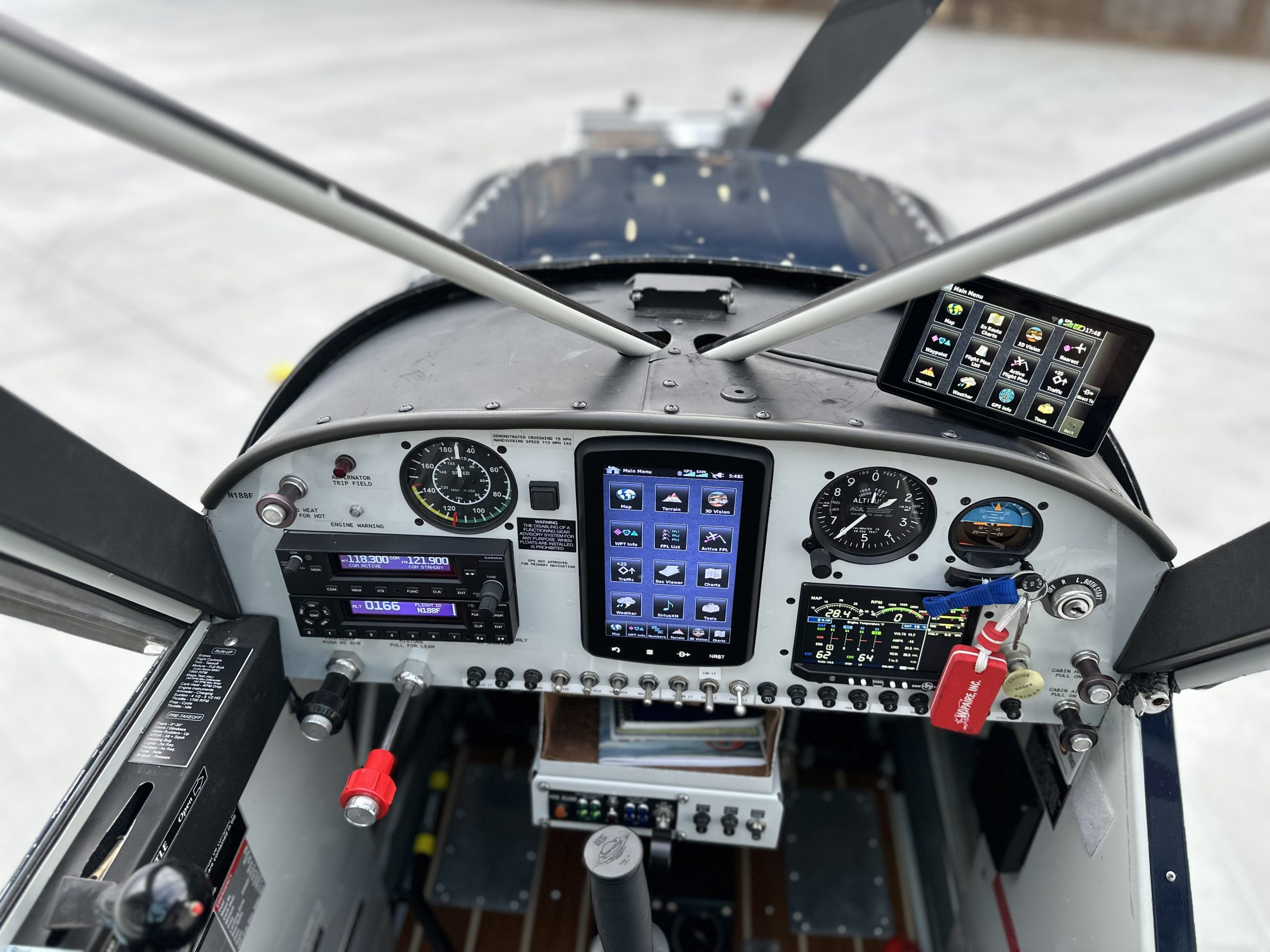 | This superbly maintained Husky offers an opportunity to step into a no-excuses airplane that is ready to go. The custom VFR panel is thoughtfully laid out, featuring a Garmin 796 portable GPS, Garmin GTR 225 comm, Garmin GTX 345 ADS-B In/Out transponder (offering free traffic and weather to your iPad and/or the 796 via Bluetooth), and JPI EDM 900 primary digital engine monitor. Mid-Continent USB outlets have been added for pilot and passenger convenience. Additional upgrades include Hartzell Trailblazer carbon fiber propeller, Aviat gross weight increase to 2,250 lbs., LED lighting with pulse lights, nav/strobe, taxi, and landing lights, PowerFlow exhaust, and leather upholstery. N188F is currently riding on 26” Goodyear main tires with an ABI 3200 Baby Bushwheel tailwheel, and is equipped with float and ski fittings for all-season flying. April 2025 annual. | |