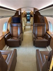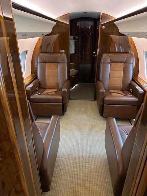 This fifteen (15) passenger interior features two (2) forward facing seats, followed by a four (4) place club arrangement, a two (2) place club opposite a (3) place divan occupies the middle cabin, and the aft zone is complimented with a four (4) place club. Galley: Contains ample prep and storage areas (No Crew Rest) Zone 1: Two (2) forward facing seats Zone 2: Four (4) place club with fold out tables Zone 3: Two (2) place club opposite a (3) place divan Zone 4: Four (4) place club with fold out tables Aft Lav: Wash basin and an externally serviceable Lav Upgrades: 2024 Carpet, 2025 Divan & Curtains |