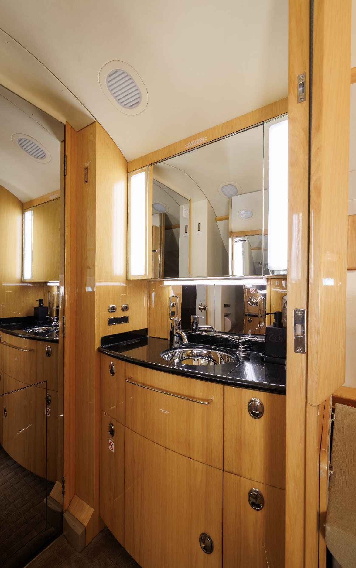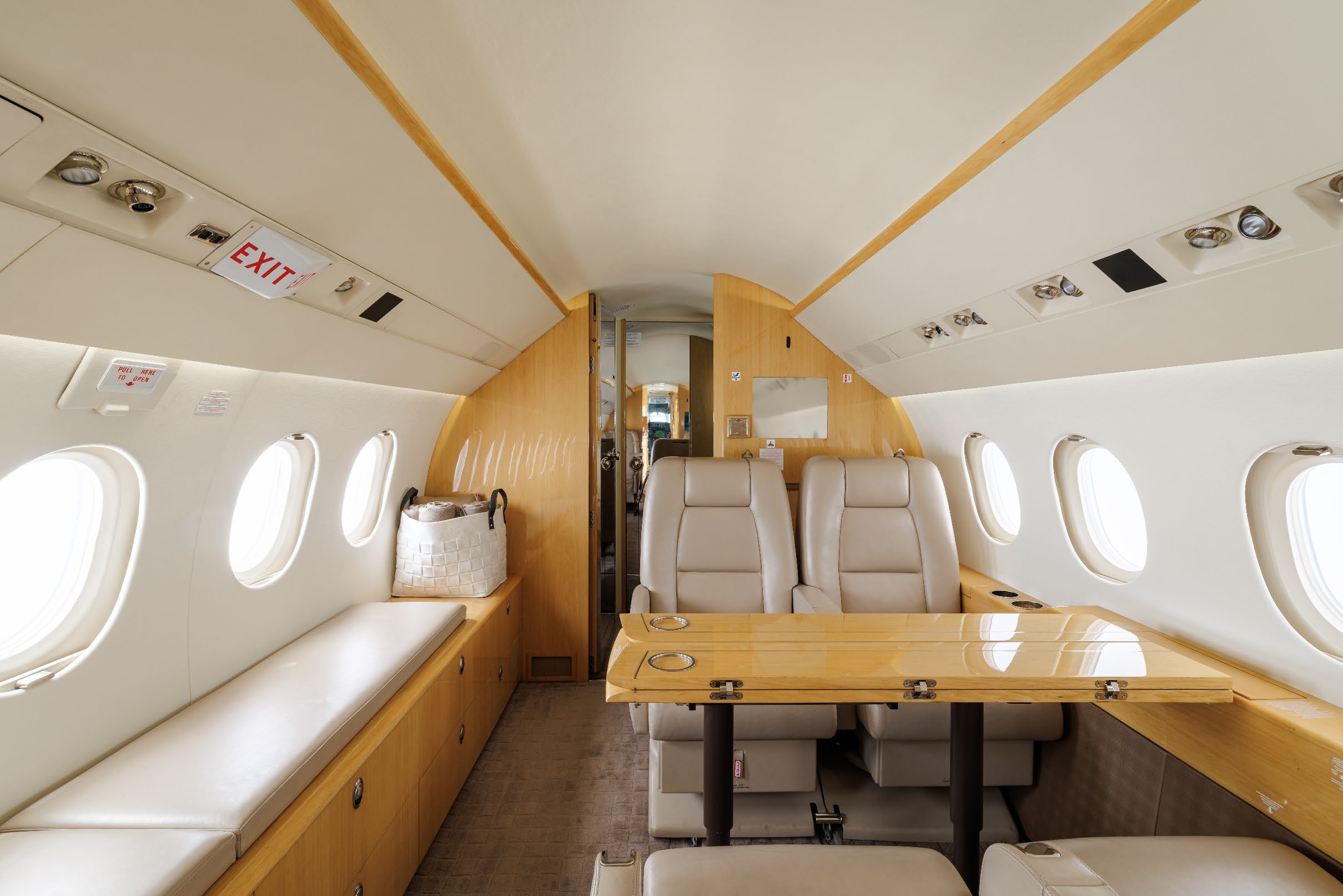 This beautiful eight (8) passenger interior features a four-place club arrangement in the forward cabin, followed by a four-place conference group with an oversized table opposite a credenza. Forward Cabin: 4-place club Aft Cabin: 4-place conference group Forward Galley Aft Lav Jump Seat (+1 passenger) Convection Oven Iacobucci Coffee Maker Microwave Oven Remote Cabin Temperature Control |