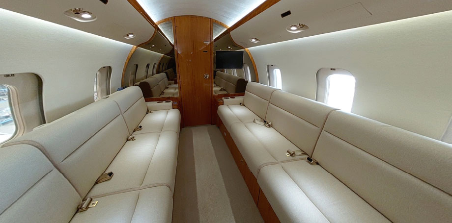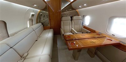 Passengers: 14/15 Seats Certified for Taxi, Take-Off & Landing (TTOL) Forward Cabin: Four (4) Place Double-Club Seating Mid Cabin: Four (4) Place Conference Grouping Opposite Three (3) Place Divan (2 Seats Certified for TTOL) Aft Cabin: Dual Three (3) Place Divans (2 Seats each Certified for TTOL / 3 Seats on RH Divan if removable bulkhead not installed) Crew Rest Location: Forward Lavatory Location: Forward & Aft |