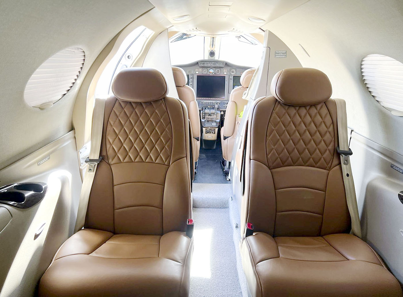 G1000 NXI G1000 SVT Chart View ADF KHF-1050 HF Traffic Advisory System Life Vest Kit Optional Wire Bundle 40 Cubic Foot Oxygen Bottle CABIN: Cabin seating for 4 passengers Left-Hand and Right-Hand Forward Storage Cabinets Dual Executive Tables Aft Center Console Forward Side-Facing Non-Belted Toilet |