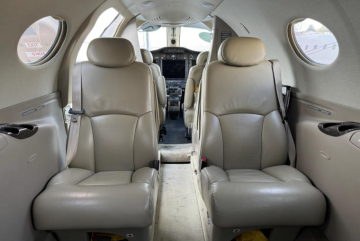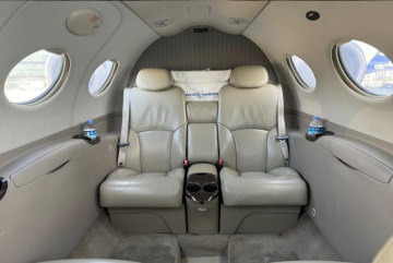 Configuration/PAX: Executive/4 passengers Seating: Beige leather 4-place club Cabinetry/Wood: Dual executive tables Entertainment: XM radio cabin entertainment Lavatory: Forward side-facing non-belted lav |