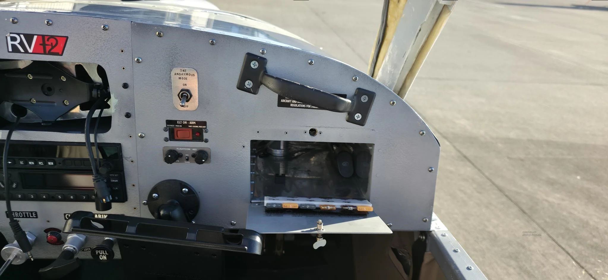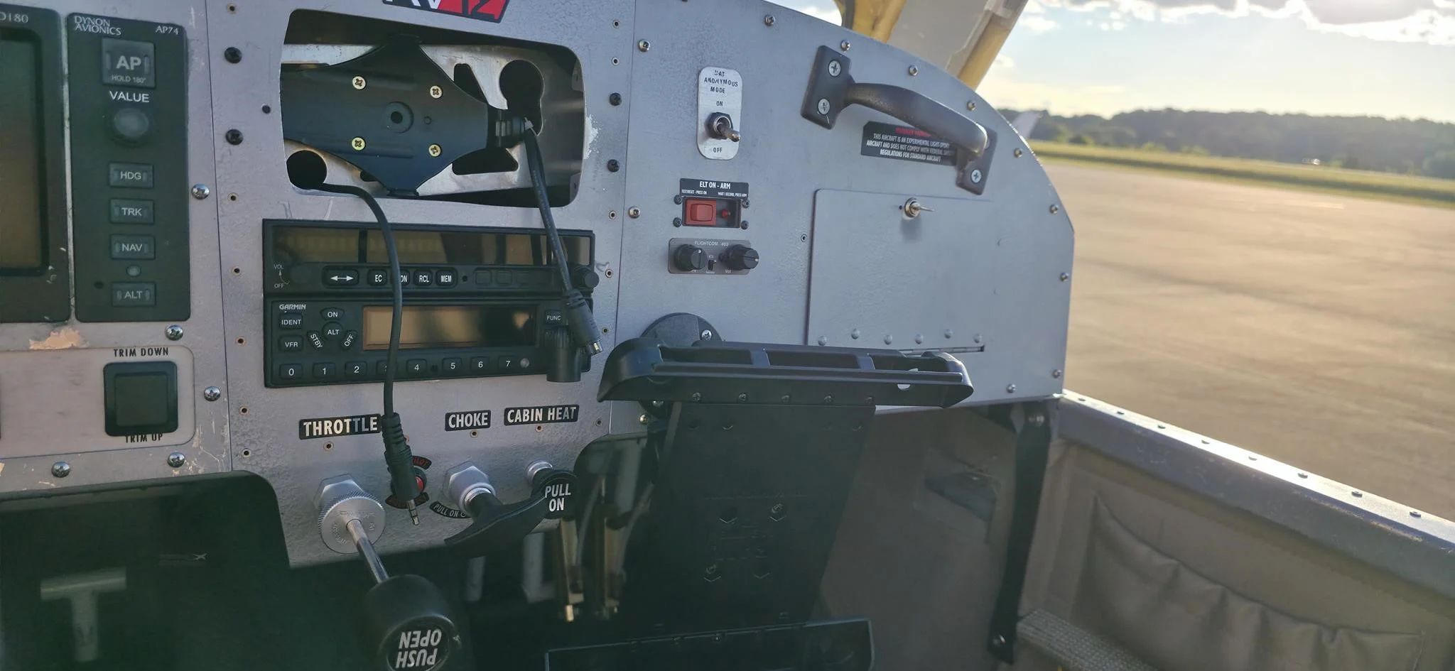 ADS-B Equipped - Yes Dynon D180 EFIS with 2022 *** Factory installed bright screen update*** ADS-B Auto Pilot Dynon AP74 heading/altitude/nav Dynon EDC10-A remote Compass Garmin G496 GPS Coupled to Autopilot!!! Garmin GTX 327 Transponder Garmin SL 40 Digital Com FC403 Intercom 2 Place Artex ME-403 ELT |