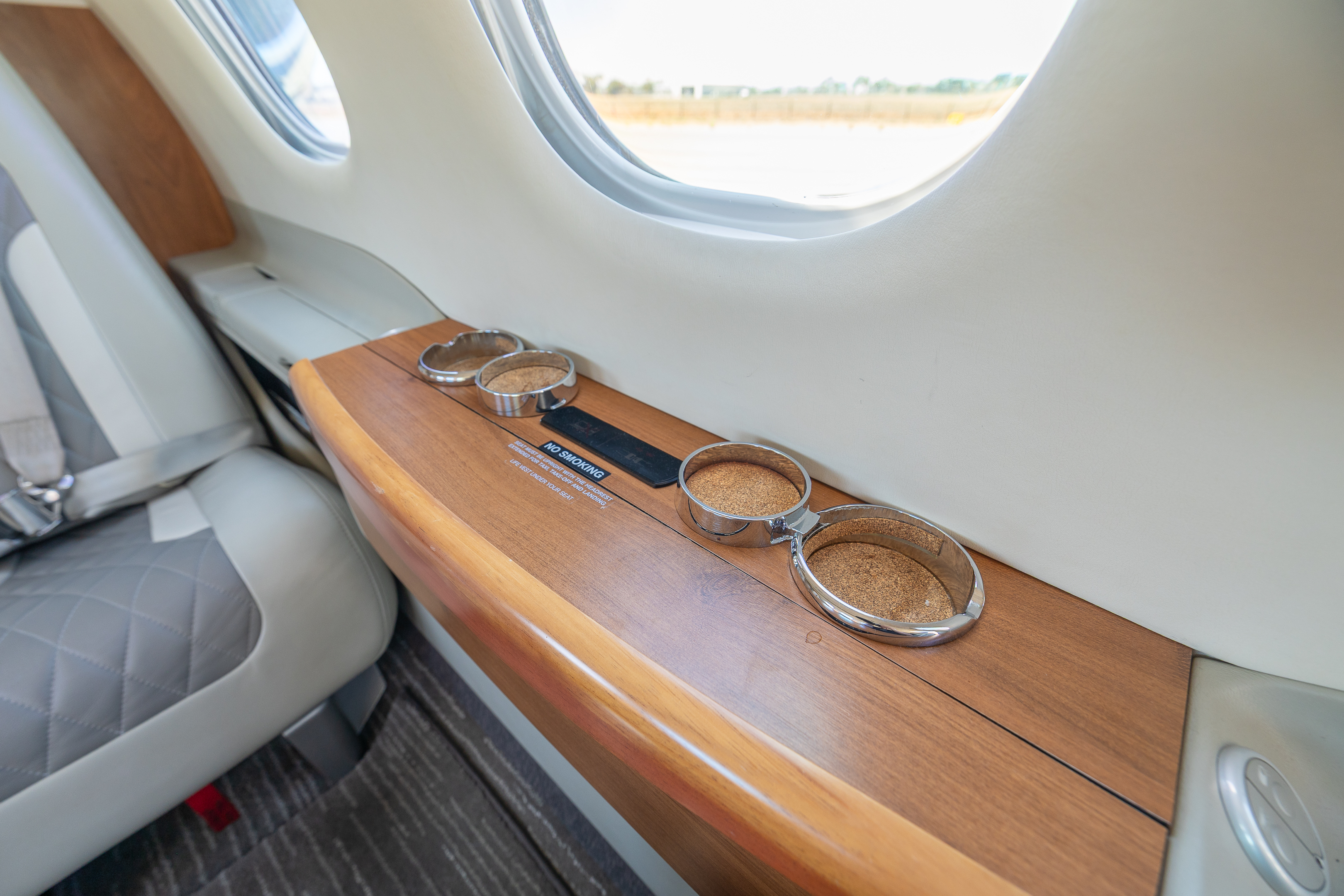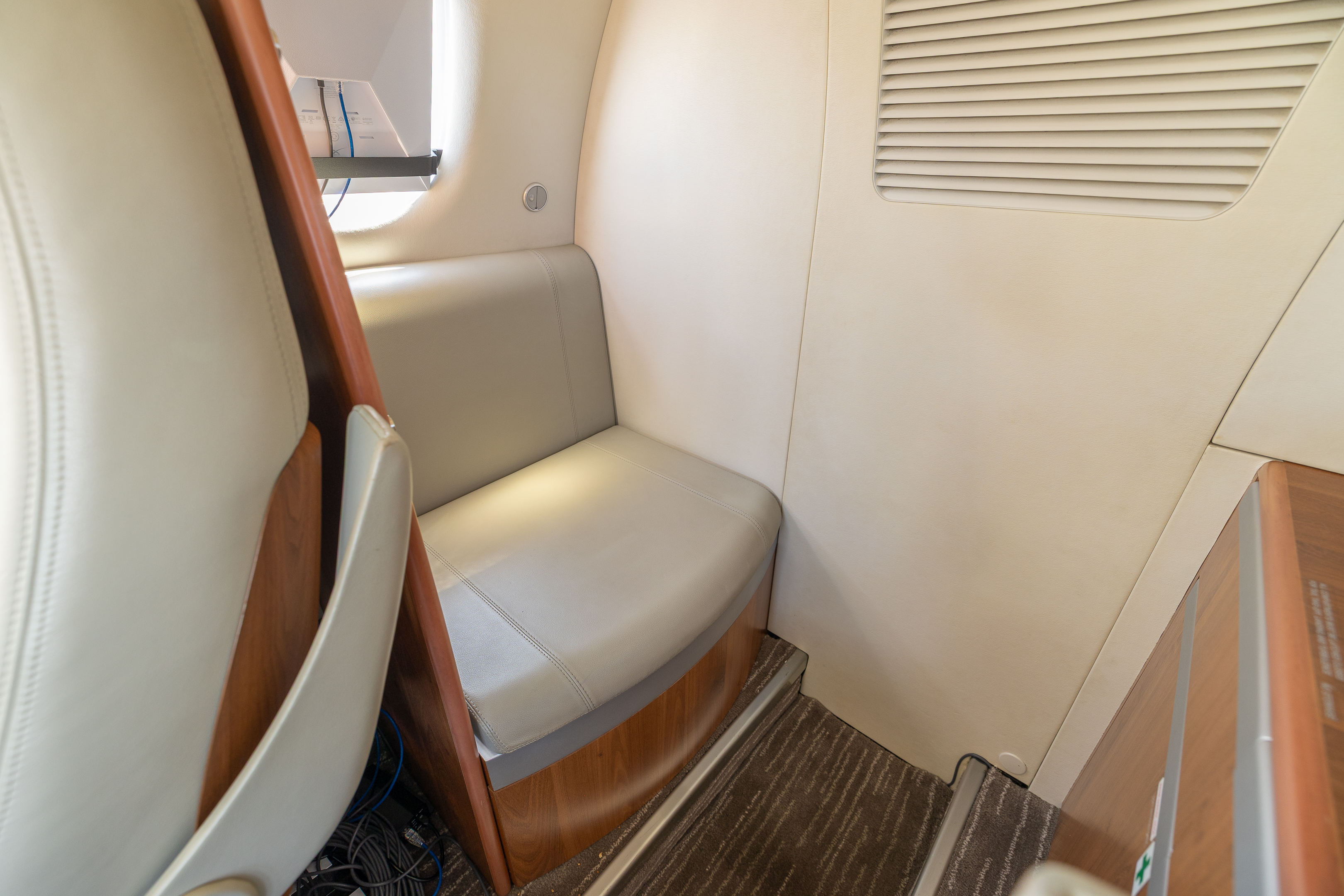 - Aft Non Belted Lav, Fwd Refreshment Center, Air Conditioning - Grey Leather, Grey Patterned Carpet - Interior Redone 2020 by Hillaero Modification Center |