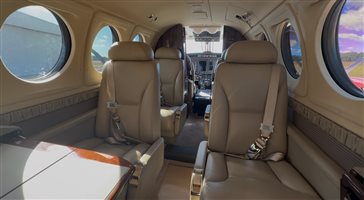 7.5 out of 10 Config/Pax: Executive/7 Passengers A/C: Freon Seating: Mid Cabin Tan Leather Club Seating Carpet: Tan Carpeting Refreshment: Forward Refreshment Center Mid Cabin Foldout Executive Tables Entertainment: AvVisor Cabin Flight Information Display, Honeywell Cabin Management System Storage: Forward Closet Lavatory: Aft Lav |