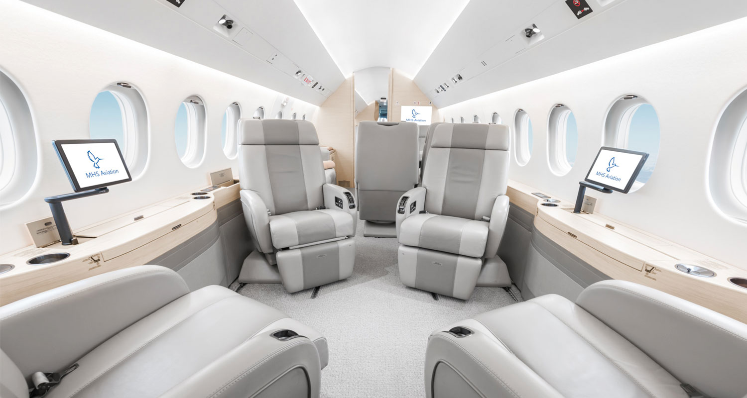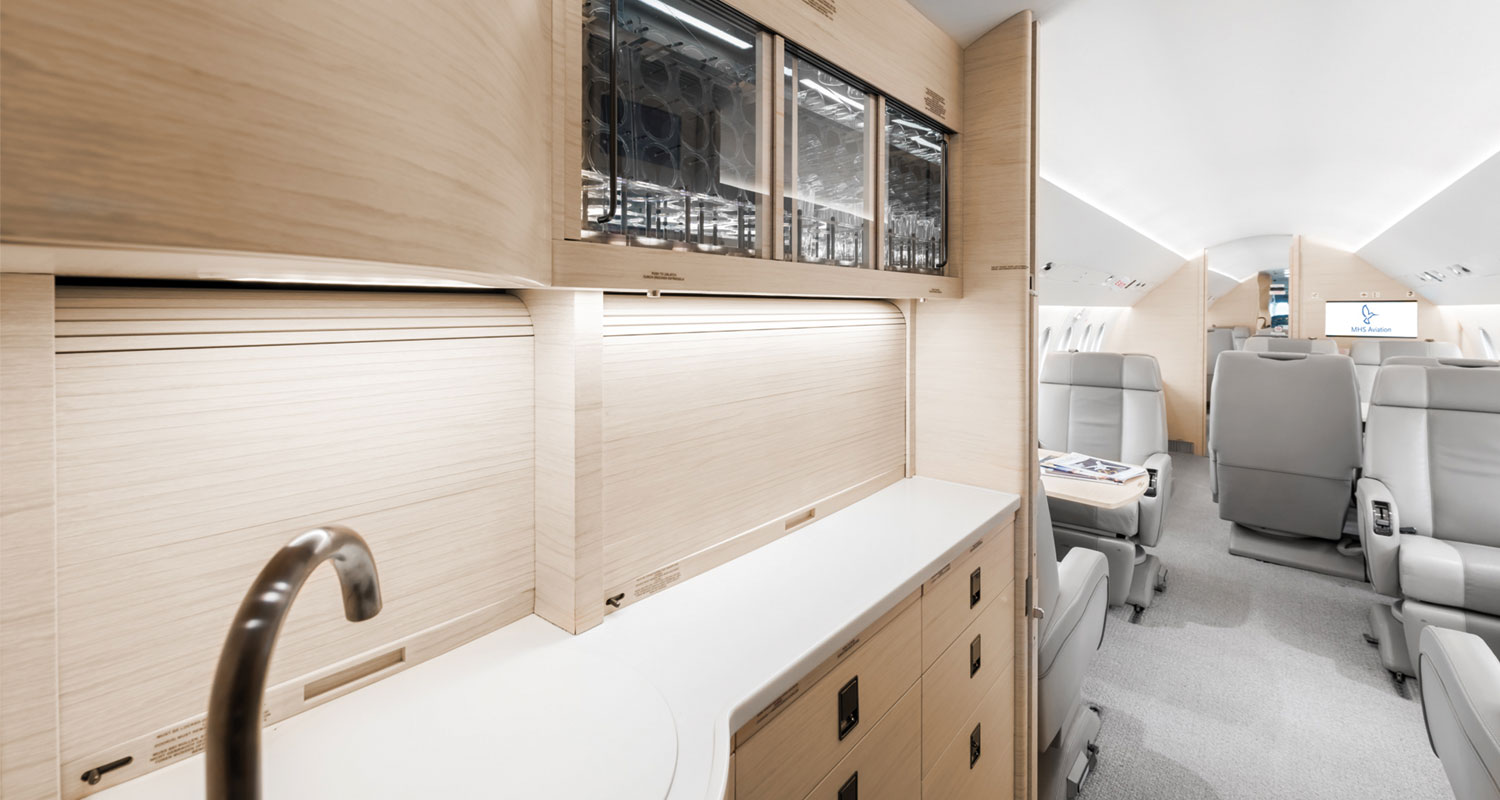 Eight Passenger Executive Configuration. 4 Single Seats/ 4 Place Conference Grouping Fowrard Galley; Aft Lavatory; Crew Rest (Jump Seat) 2 Disc Blue-Ray Player, Cabin Management System, 115 AC Outlet |