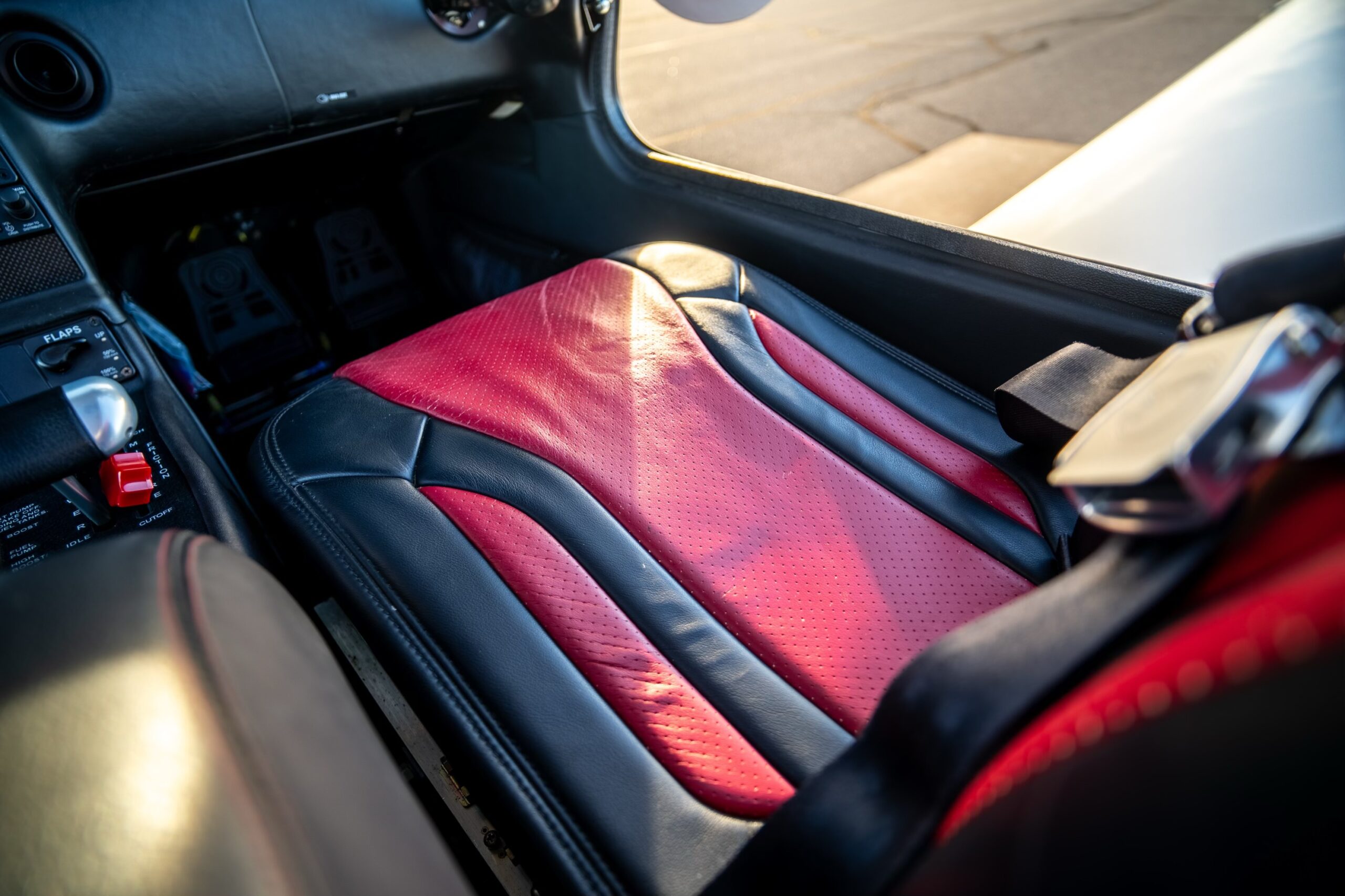 60/40 Flex Seating Carbon Obsidian Black and Imperial Red Leather Interior |