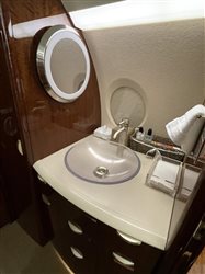 This nine (9) passengerfloor plan features two (2)distinct passenger cabin areas with a galley and an aft lavatories. There is also a forward jump seat and pocket door. Forward Galley: Prep area inclusive of coffee maker and microwave. ForwardCabin: Four (4) single club seats with two console tables. Aft Cabin: Three (3) place divan opposite two (2) place club seats with a console table. Aft Lavatory: Features a sink and toilet with outside servicing capability Cabin Entertainment Gogo ATG-5000 Dual 19" HD LCD Display Monitors Cabin View Cabin Management System |