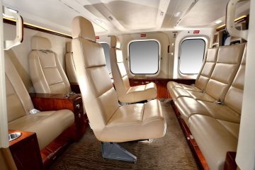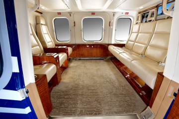 Original ACI Interior 2014 VIP Executive seven (7) passenger interior with additional seats for 8 or 9 pax option and optional conference table. Features four (4) aft facing seats and three (3) forward facing seats. The cabin features include: Custom Executive VIP Cabin Interior Cockpit / Cabin Separation Bulkhead with sliding privacy windows 3 - Forward Facing VIP seats with arm rests – drawers beneath for additional storage 4 - Aft Facing VIP seats with two exterior armrests -– drawers beneath for additional storage Optional seats that can swapped in for 8 or 9 passenger configuration Optional Cabin conference table Cabin Interior Sound Reduction Wall Panels System Drawers beneath seats to store life vests and smoke hoods 4 – 110 volt power outlets |