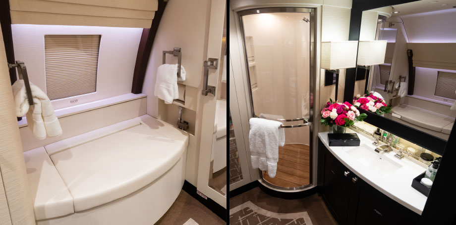 Number of Passengers: 27 (Certified For Taxi, Take-Off & Landing) Forward Lounge: Three (3) Place Divan With Electric Hi/Lo Table (Foldout Queen Size Bed) One (1) Executive Seat Two (2) Place Club Seating 42” Bulkhead Monitor Master Suite: Master Bedroom with Queen Size Bed Master Lavatory with Shower Separate Low & Full Height Storage Dining Area: Three (3) Place Divan with Electric Hi/Lo Table (Foldout Queen Size Bed) Three (3) Executive Seats 42” Bulkhead Monitor Business Lounge: Four (4) Place Conference Grouping opposite Three (3) Place Divan 42” Bulkhead Monitor Staff Area: Eight (8) Business Class Seats with Overhead Luggage Storage Galley Locations: Forward & Aft Lavatory Locations: Forward Crew & VIP, Aft (separate Men’s and Women’s) ENTERTAINMENT Rockwell Collins Venue Cabin Management System (CMS) / In-Flight Entertainment (IFE) GALLEY & CABIN FEATURES Steam Ovens Microwave Ovens Refrigerator Coffee Maker Air Chiller Instant Water Heater CMS Touch Screen Controls Cabin Telephone System External Camera System 230VAC / 50Hz Power Outlets 115VAC / 60 & 400Hz Power Outlets N2 Aero Thermal / Acoustic Insulation |