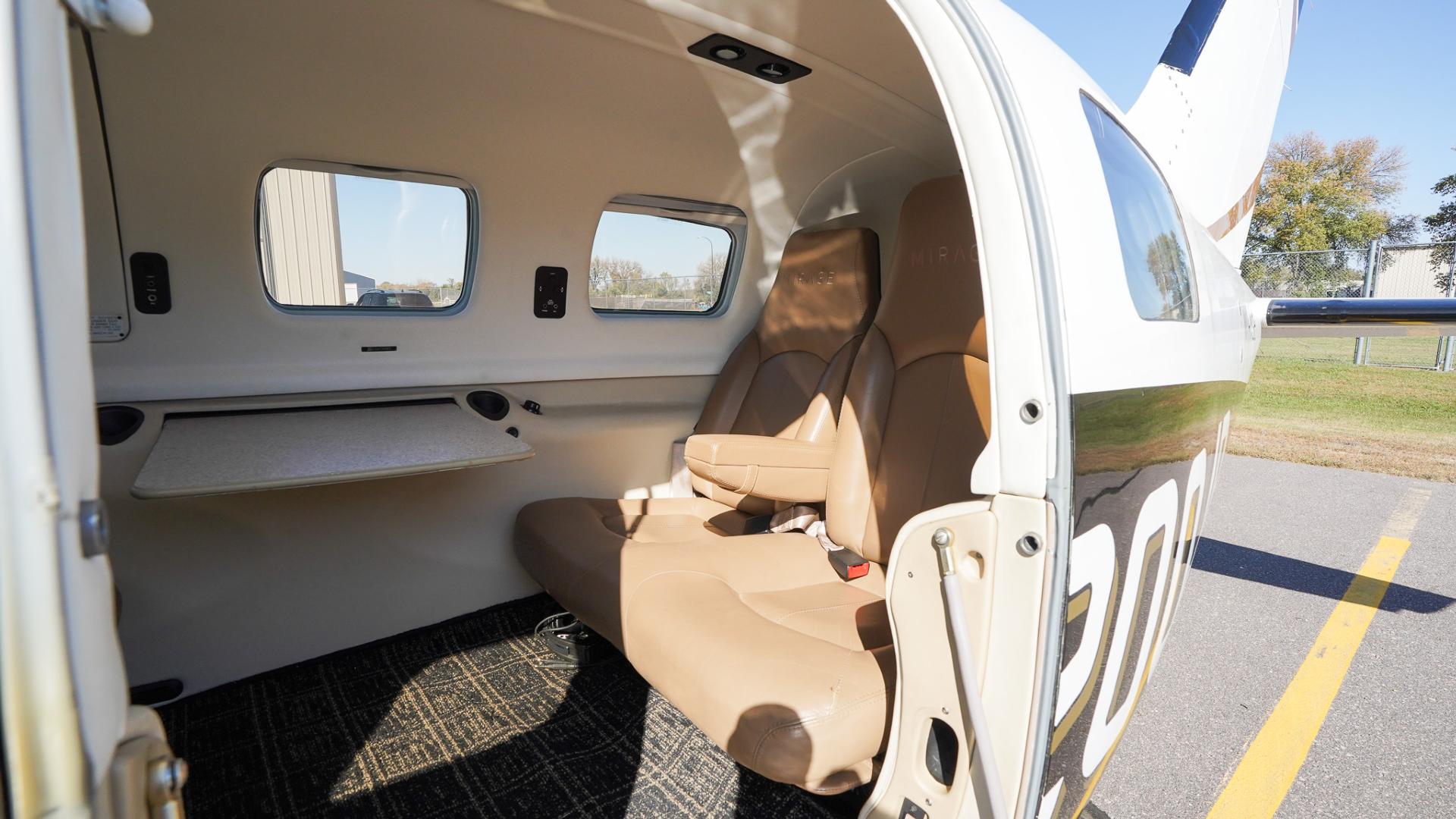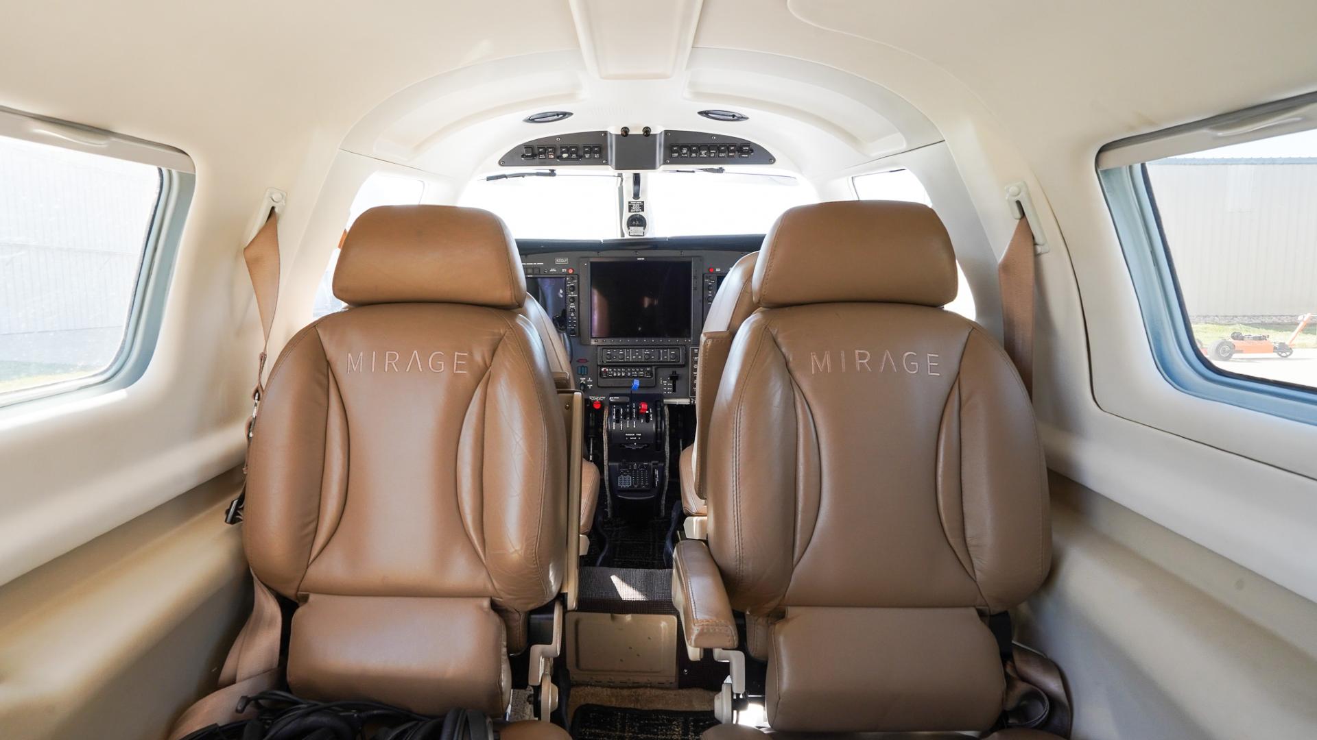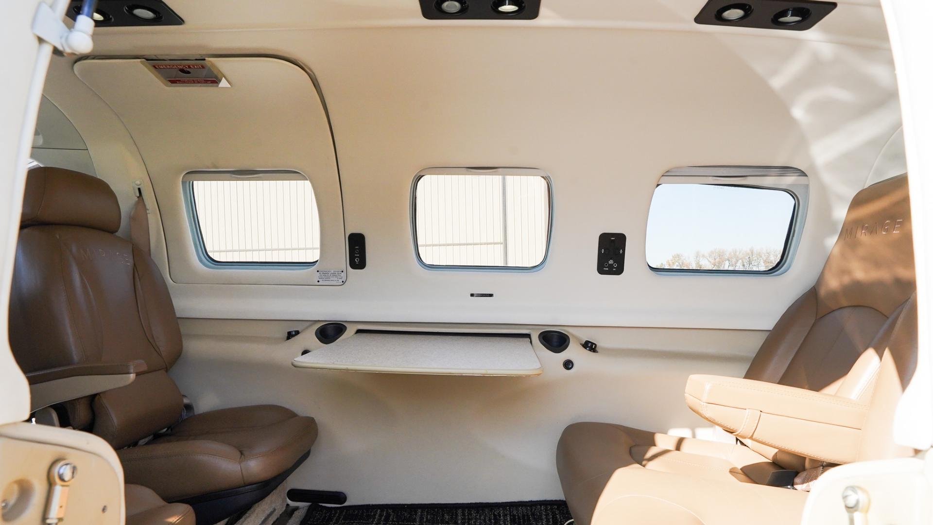 | Step inside to a warm and stylish tan leather interior, accented with matching tray tables and a tasteful black-and-tan flooring combination. The cabin is clean, well-kept, and in good overall condition, offering both comfort and sophistication. With club seating for passengers, you’ll enjoy plenty of space to stretch out, work, or relax during your flights. The thoughtful layout and finishes make this Mirage as enjoyable inside as it is impressive outside. Ride in style, with comfort and room to spare—ready to go wherever your journey takes you. | |