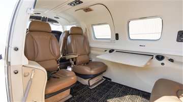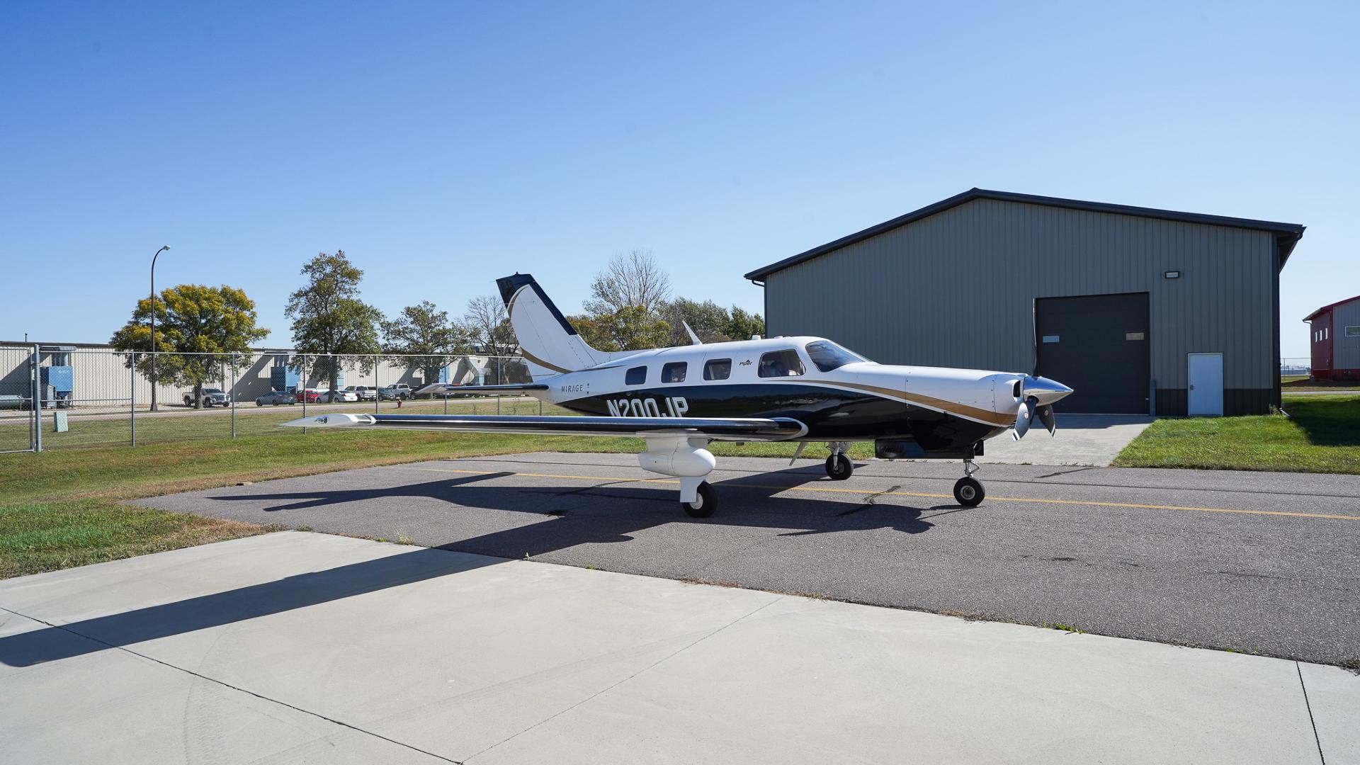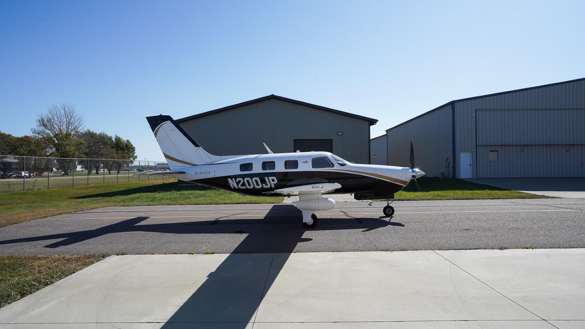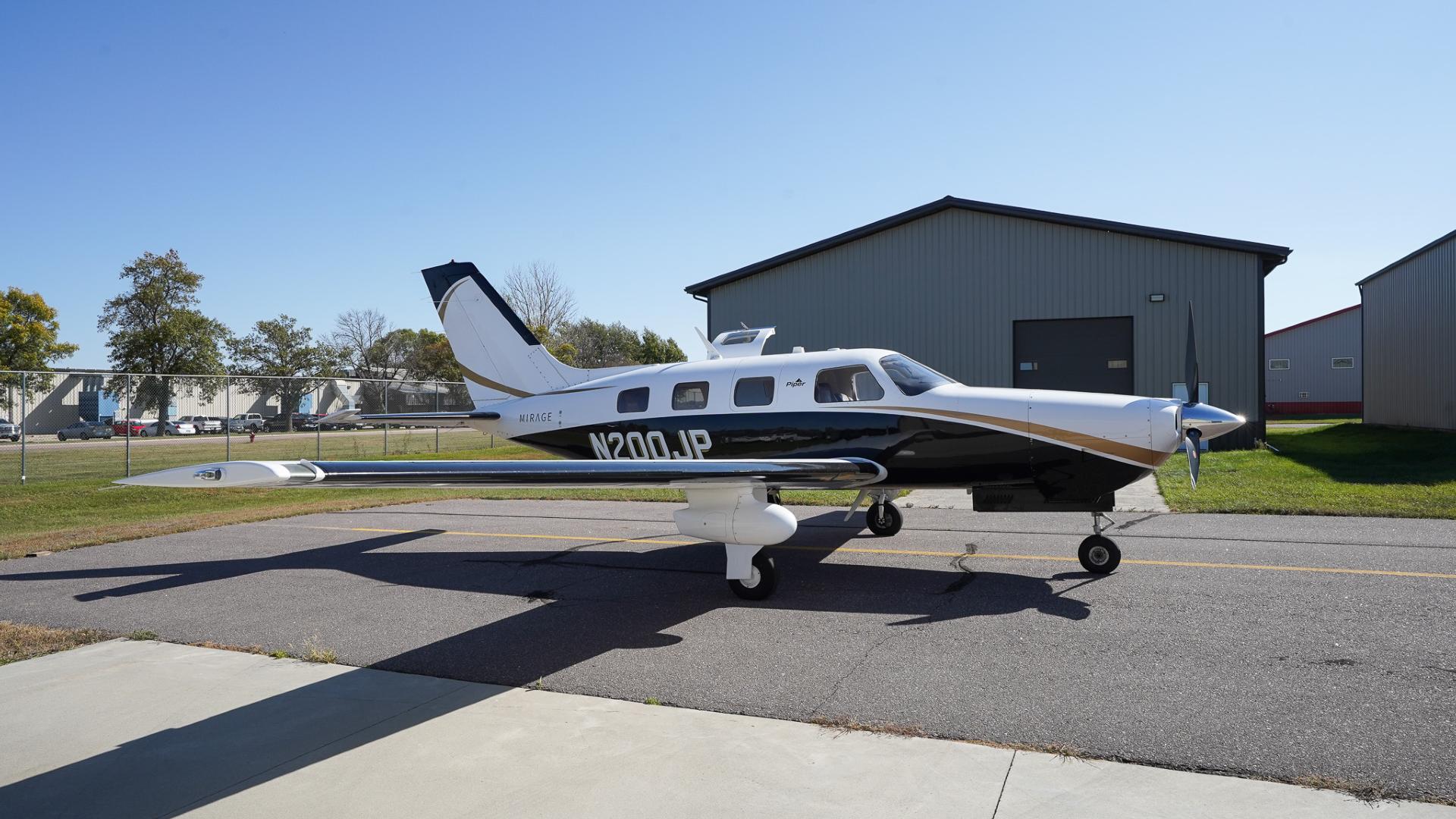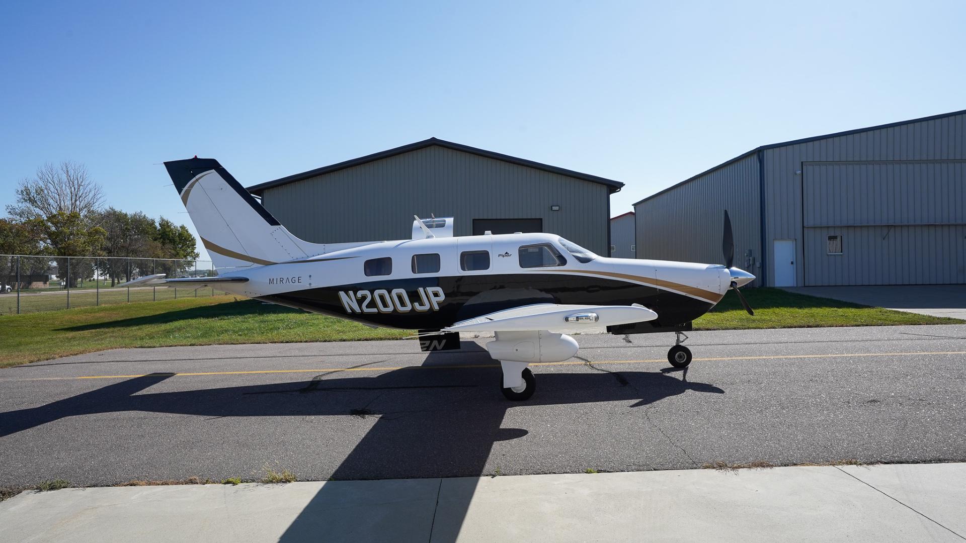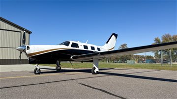 | This Piper Malibu Mirage features a timeless and elegant paint scheme: a crisp overall white top paired with a sleek black lower fuselage, accented beautifully with subtle gold striping. The combination gives the aircraft a refined yet commanding ramp presence that turns heads wherever it goes. The aircraft has been hangared throughout its life, and it truly shows—paint, finish, and details remain in excellent condition. This is an airplane that not only performs at the highest level but also presents itself with pride. | |