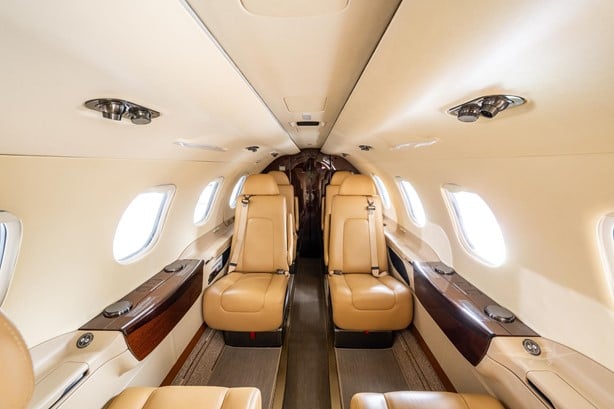 | Interior Refurbished : 7 Seat Configuration with Belted Lavatory allows for 9 Passengers Single Pilot or 8 Dual Pilot. Phone and Datalink In-Flight Entertainment Premium Package. Natural Wood, Veneer Refreshment Center | |