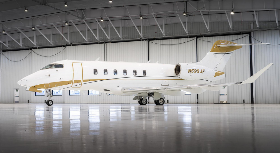 This Challenger 350 features a refined, modern cabin designed for comfort and productivity. The configuration accommodates 8 passengers plus a belted lavatory seat, offering flexible seating options (9 Pax TTOL).