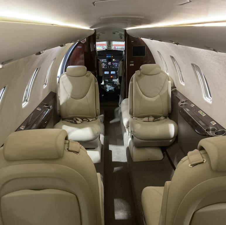 Executive Configuration French Roast Interior Scheme Forward 2-Place Couch Six Pedestal Seats in a Single Club Configuration Forward Refreshment Center RosenView LCD Video Monitor Aviator 300 Swift Broadband Smoked Nickel Finishes Cabin Dividers w/ Sliding Doors Six 115-Volt AC Universal Outlets Forward Closet Aft Closet w/ Sink Externally Serviceable Belted Flushing Lav |