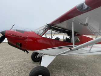 Upgraded cowl with improved engine cooling and cabin heating Upgraded nickel leading edge Catto prop 40g extended range fuel tanks Lightweight LED nav and strobe lights, with Wig-Wag Landing Lights Gap Seals on Elevator and Rudder Medium weight Stits Polyfiber fabric Fuel sight gauges Inertial Reel 5 Point seat belt system for Pilot Inertial Reel 4 Point seat belt system for Passenger Complete 4130 Steel reinforced fuselage Super Cub airfoil – USA35(B) Vortex Generators for sub 32 mph stall speeds 803 lb Useful load Fuel Capacity:40g Extended Range Fuel Tanks Empty Weight:1062 Gross Weight:1865 |
