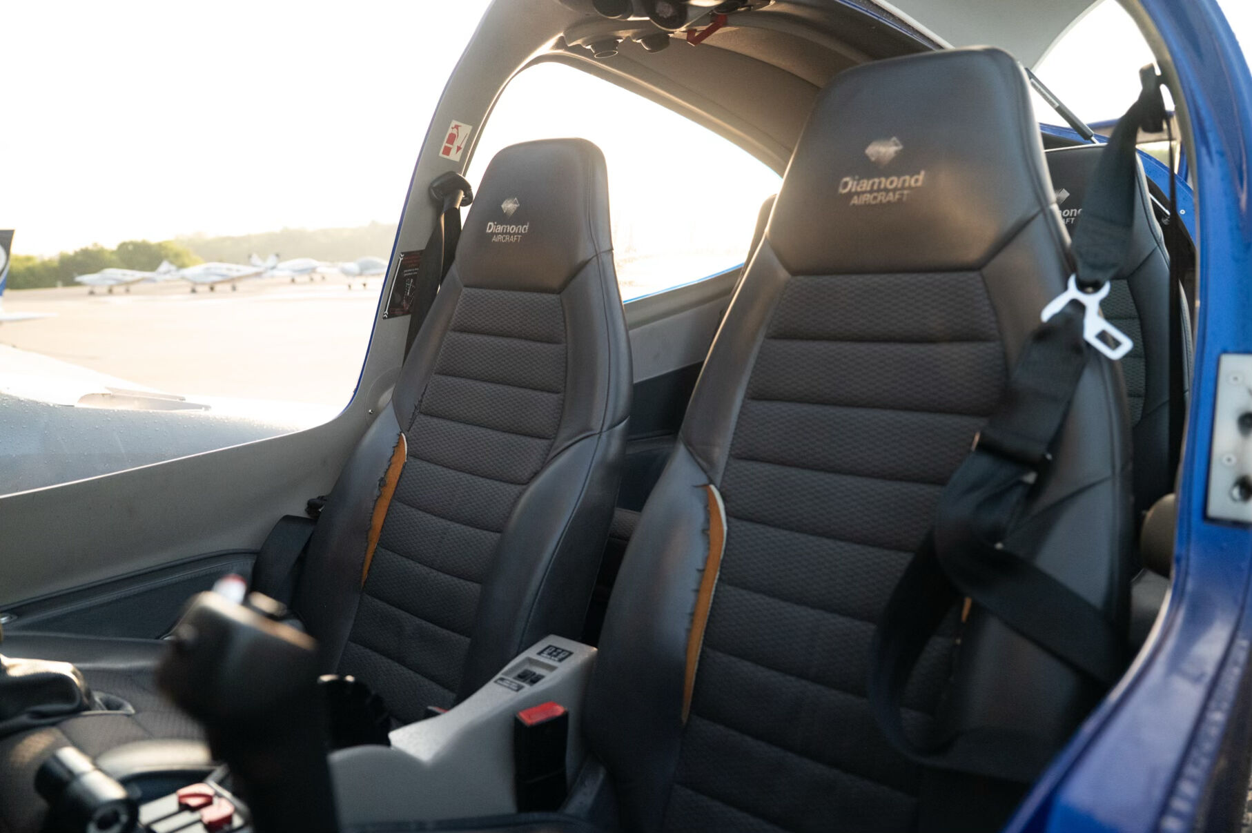 Diamond Depart Interior (Light Grey or Dark Grey) Ergonomic seats with adjustable backrests and lumbar support Sun glare shields and canopy lining 1x USB port each for pilot and copilot Dual headset plugs (LEMO and standard) Overhead cabin light and instrument lighting Baggage extension with separate compartment Nose baggage compartment accessible from both sides |