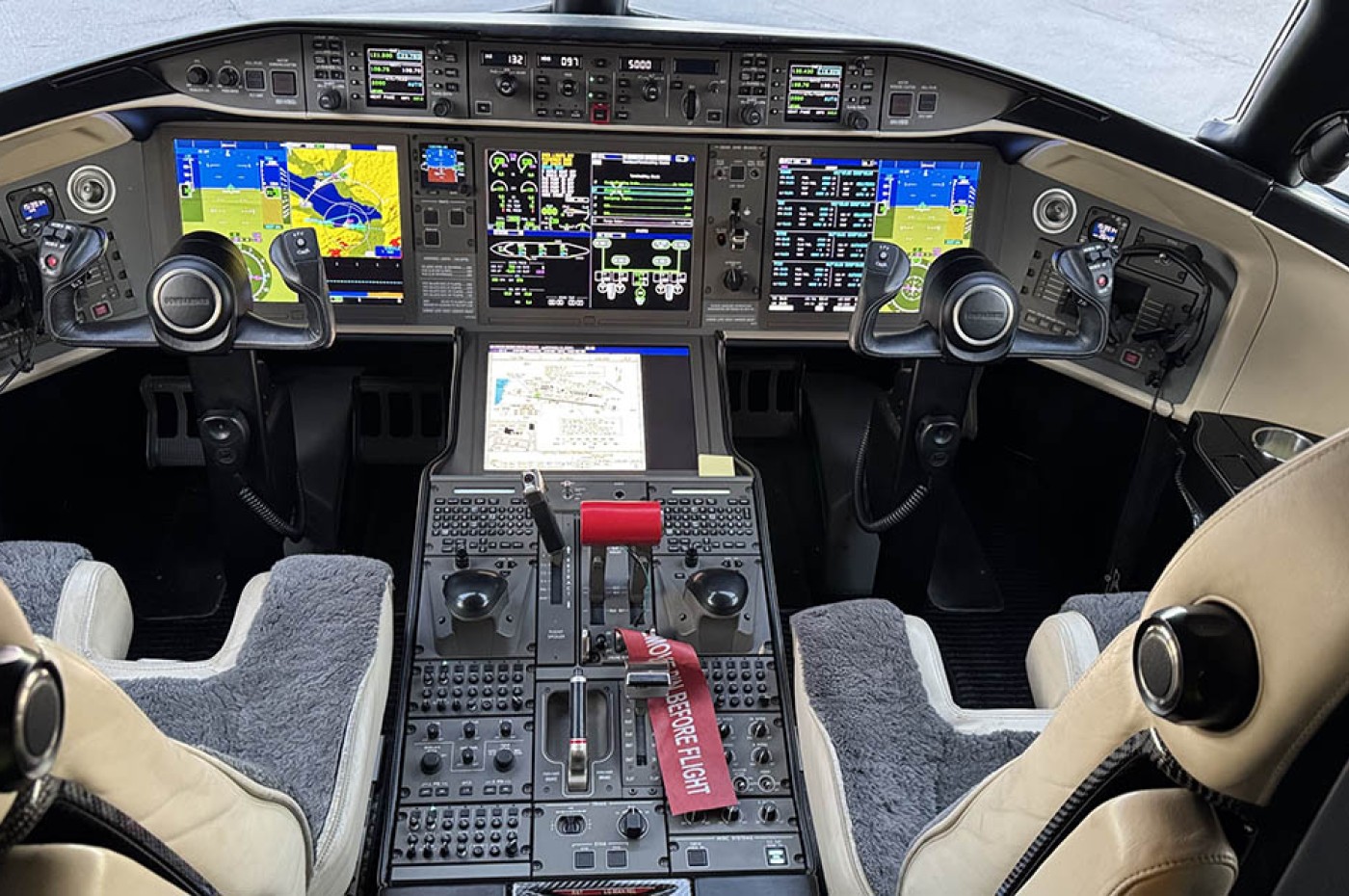 Rockwell Collins Pro Line FusionĀ® Avionics Suite: Four AFD-6520 15.1 inch LCD Adaptive Flight Displays Triple Honeywell Inertial Reference Units Triple Collins ADC-3020 Air Data Computers Triple FMS w/ Activation of FMS Data WAAS/LPV functions Dual Collins GPS-4000S w/ WAAS/LPV Collins RTA-4118 Multiscan Weather Radar Collins TDR-94D Transponder w/ EHS and ADS-B Out Triple Collins VHF-4000 COMM Radios w/ Datalink Dual Collins Radio Control Unit RIU-4110 w/ Selcal and Selcal/Datalink Dual Collins NAV-4000 NAV Radios with ADF Dual Collins DME-4000 Distance Measuring Equipment Dual Collins ALT-4000 Radio Altimeters Dual Collins HF-9031A HF Communication System Collins TSS-4100 TCAS/Transponder w/ Chg 7.1 Collins TPM-6000 TAWS WX-1000E Lightning Detection System L3 FA2100 Flight Data Recorder L3 FA2100 Cockpit Voice Recorder FANS Compliant w/ RIPS Quick Access Recorder |