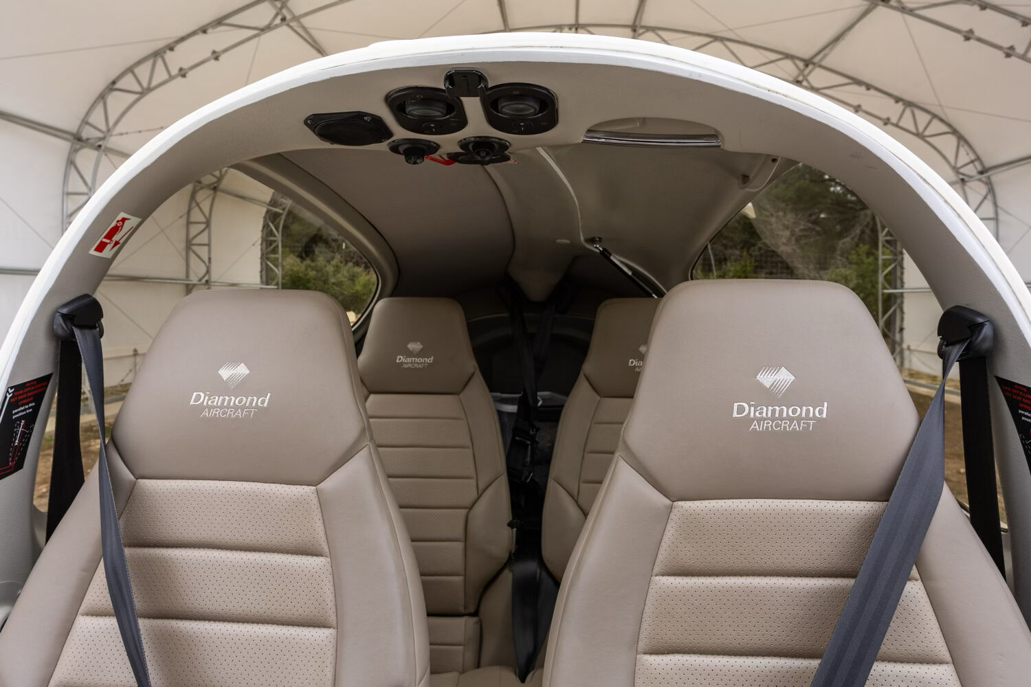 Beige Perforated Leather Ergonomic Seats for Pilot and Co-pilot Rear 2-Seat Bench for Passengers Dark Grey Premium Carpet Light Grey Leather Headliners |
