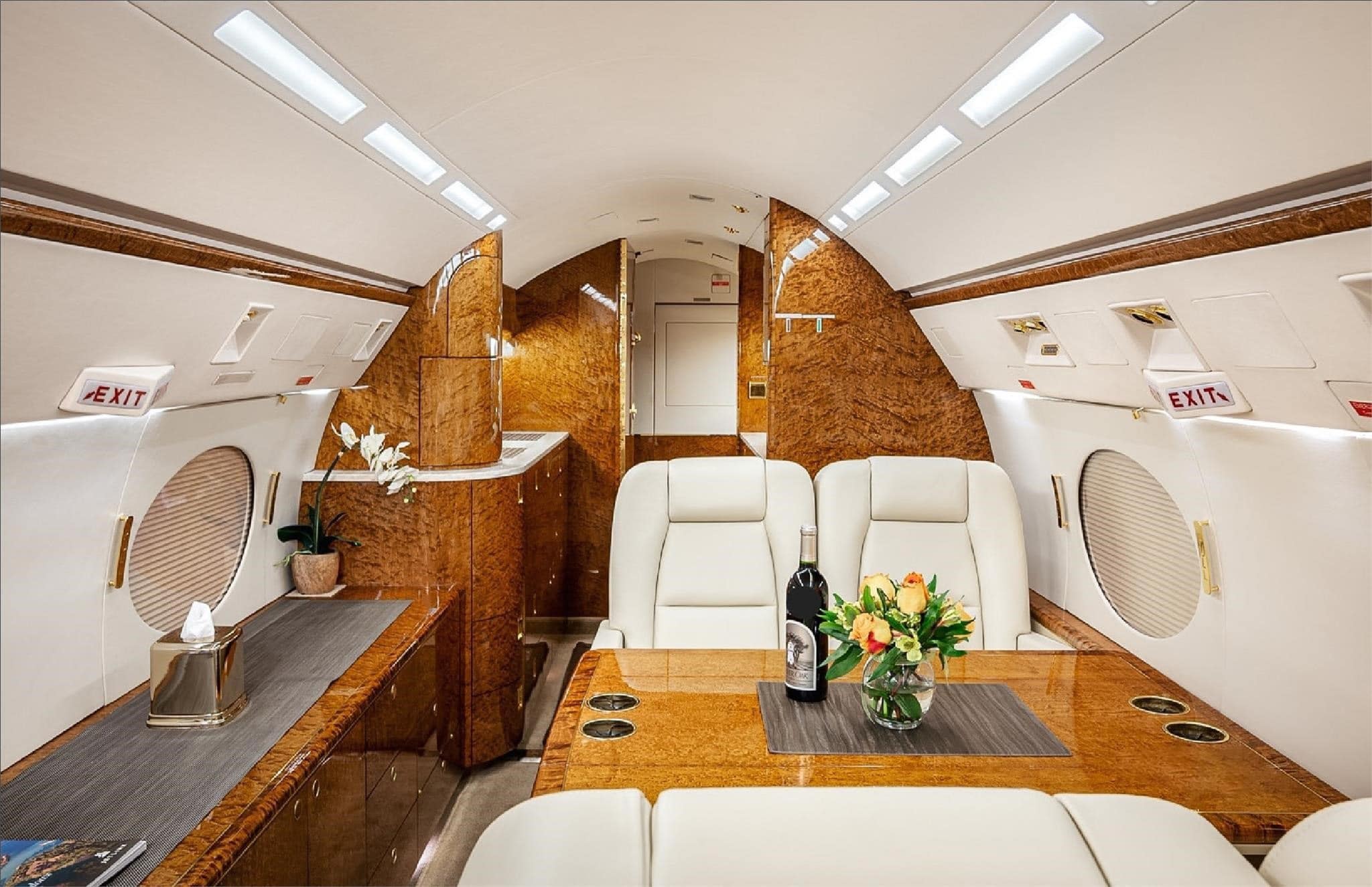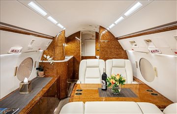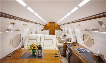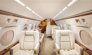 2019 Interior Executive/13 passengers Interior soft goods replaced including re-foaming of all seats Belvedair Eleanor Aeristo leather seating, forward double club, mid-cabin 3-place divan opposite single club, aft 4-place conference group, crew seats w/new custom sheepskin covers , certified cockpit jumpseat Fog Holland Moore & Giles leather lower sidewalls Earth tone Dover wool carpeting Aft galley w/new countertops & cutting board, microwave oven, high-temperature oven, coffeemaker, chilling cabinet & ample storage Aft credenza w/ample storage space Airshow in-flight passenger information system, Collins cabin management system Gogo Biz w/ATG-5000 Wi-Fi (Domestic only) Cabin power outlets, upgraded LED lighting, Reed Izit Enhanced Classic leather window line panels, two dual USB-C power ports Forward crew lav, aft lav |