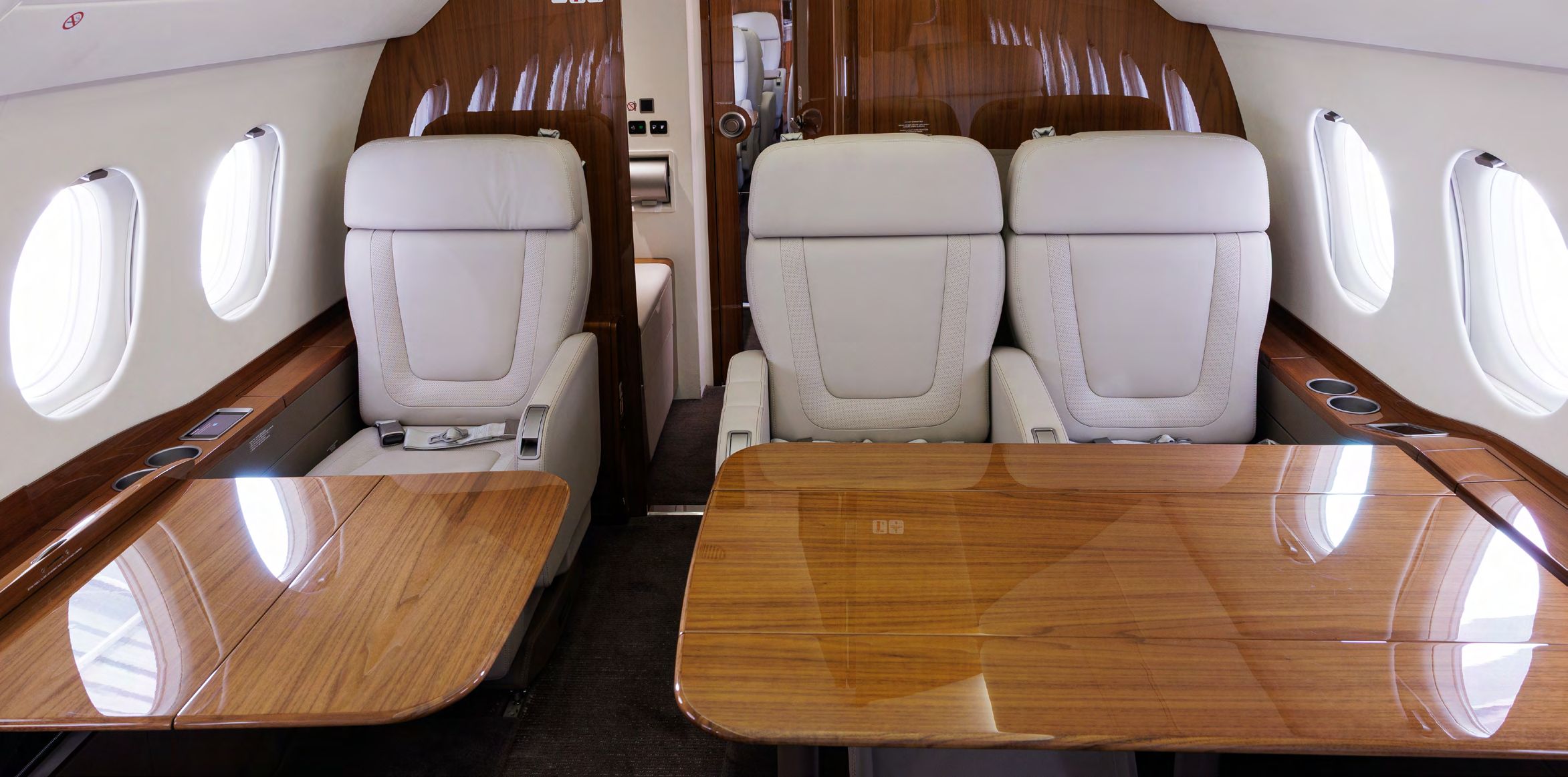 Number of Passengers: Ten (10) Seats Certified For Taxi, Take-Off & Landing Forward Cabin: Four (4) Club Seats Aft Cabin: Four (4) Seat Conference Group opposite Two (2) Club Seats Galley Location: Forward Galley Equipment: Microwave, Oven, Nespresso Coffee Machine Jump Seat: Yes COLOURS / MATERIALS Seats: Light Beige Wood: Gloss Walnut Hardwood Carpet: Dark Brown |