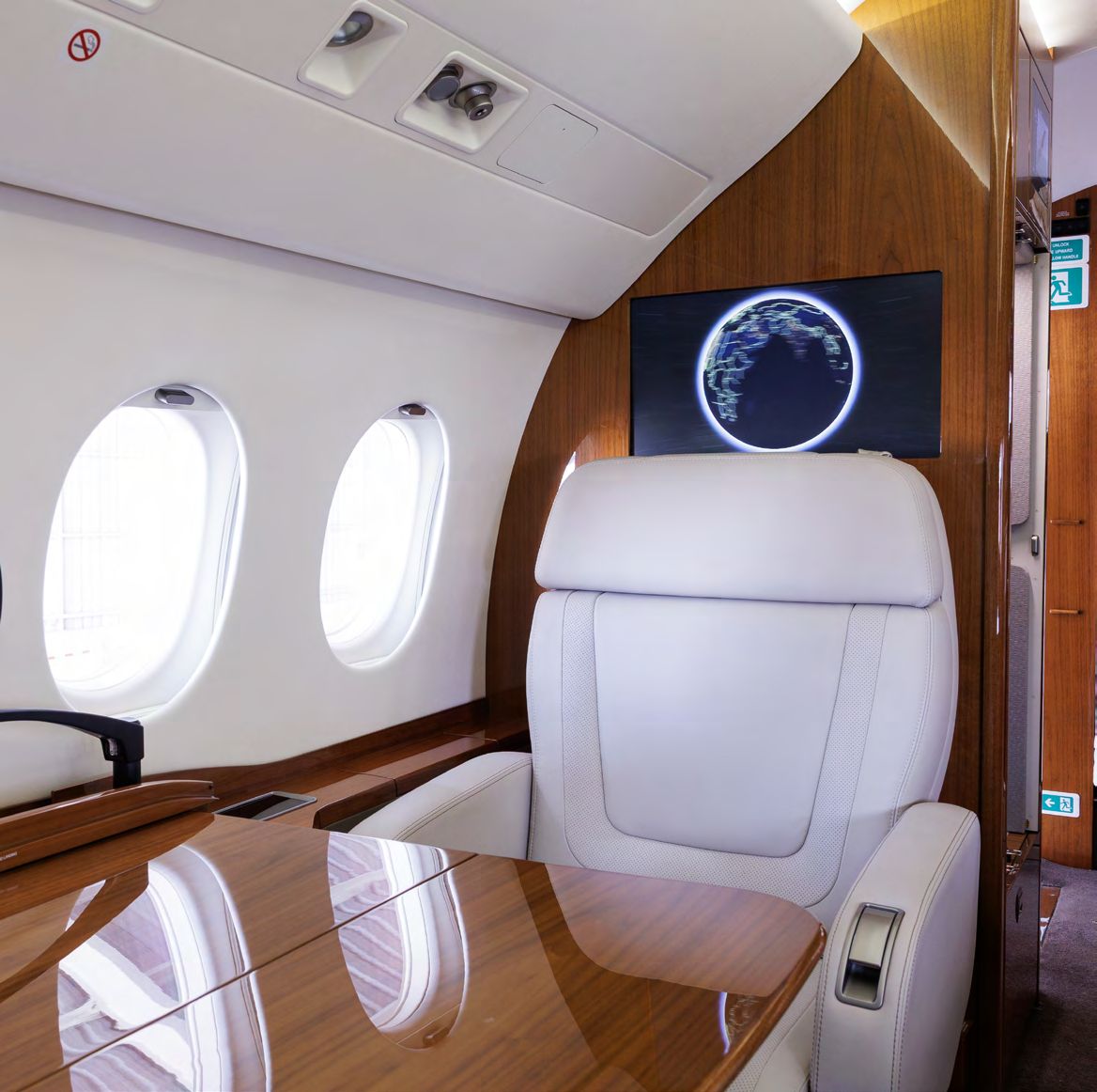 ENTERTAINMENT & CONNECTIVITY One (1) 22 Inch Widscreen HD LED Forward Bulkhead Monitor Two (2) iPad Arm Personal / Plug-In Monitors Falcon Map Airshow System Falcon Cabin Management System Falcon Talk Phone System Cabin Sound System (1 Amplifier, 5 Speakers, 1 Subwoofer) |