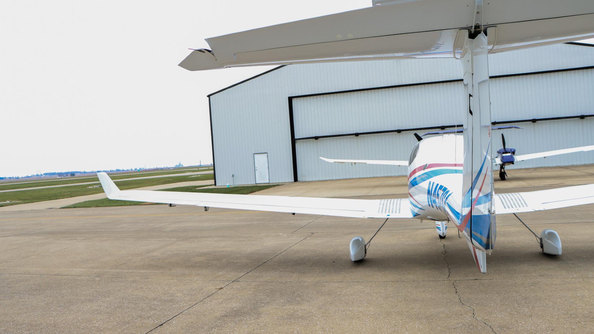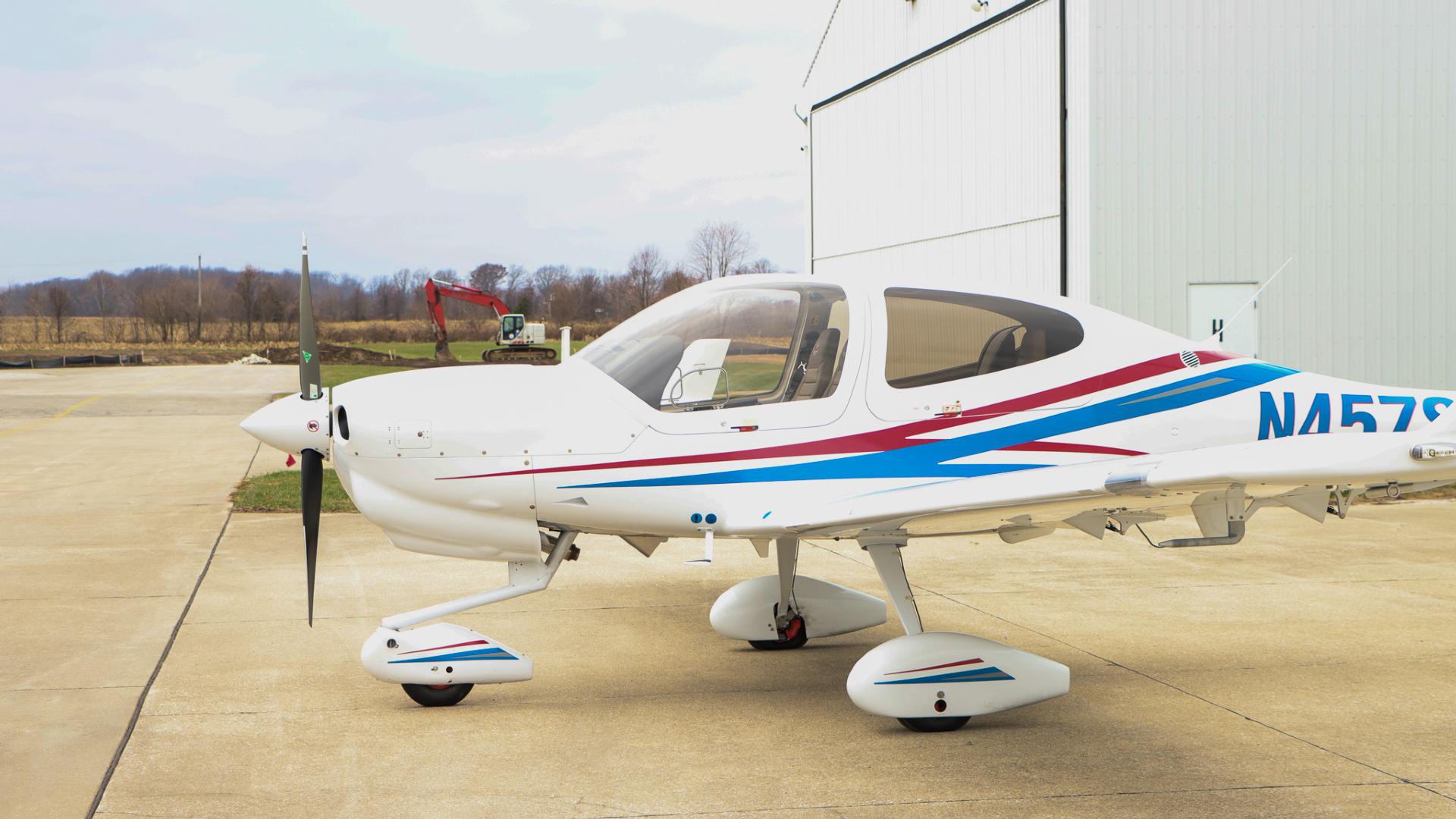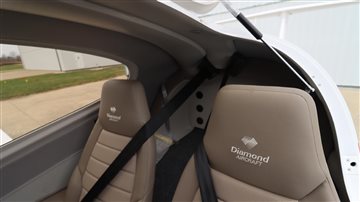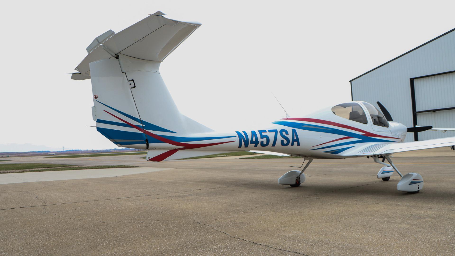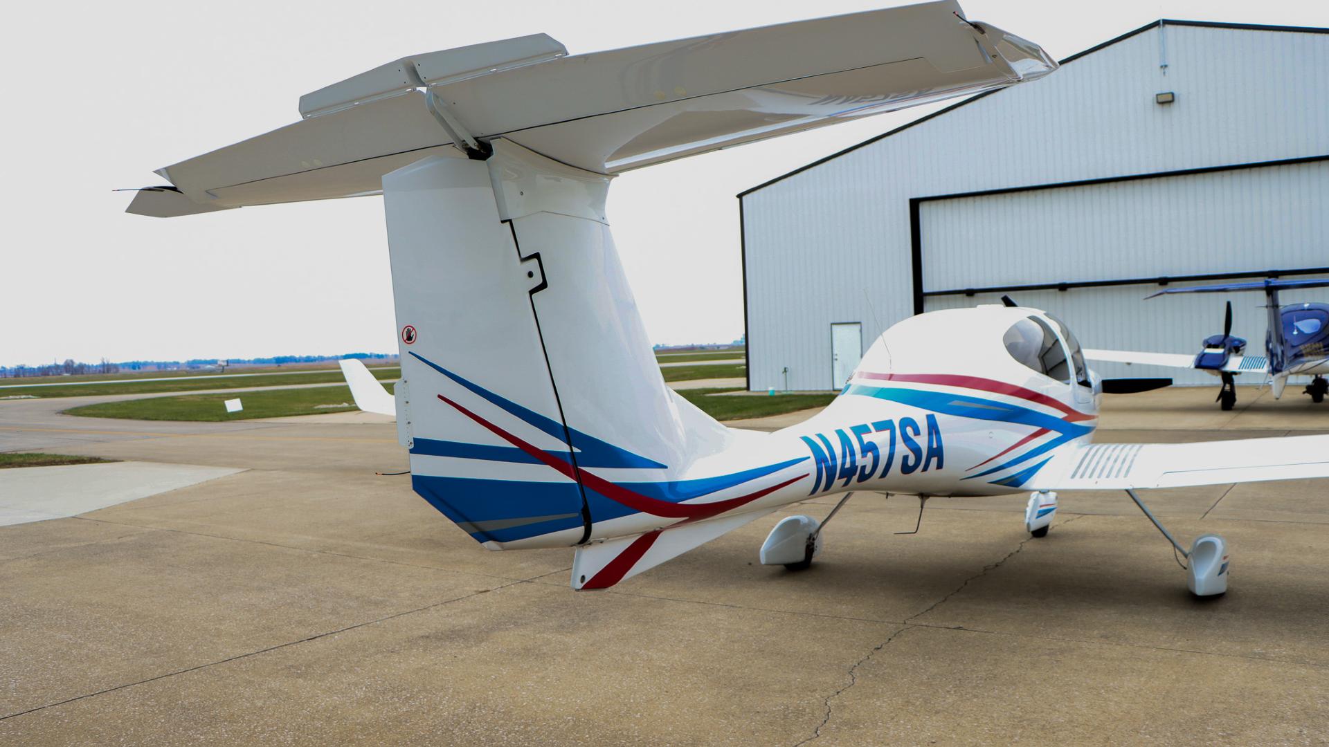 | Finished in a crisp white base accented by bold red and blue exterior striping, this aircraft turns heads on the ramp while maintaining Diamond’s signature aerodynamic elegance. | |