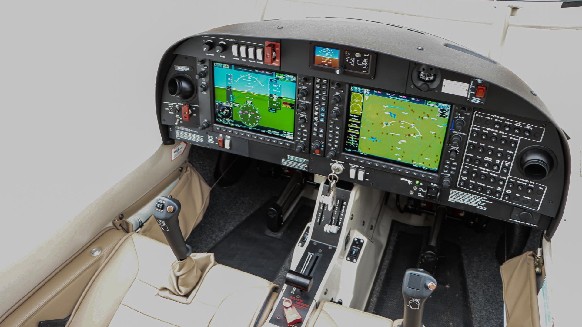| Inside, the tan interior creates a bright, inviting cabin that feels both refined and relaxed. Thoughtful details elevate the experience, including electronically adjustable rudder pedals that allow pilots of all sizes to quickly dial in a perfect seating and control position at the touch of a button. Factory-installed air conditioning keeps the cabin comfortable year-round, making every flight more enjoyable, whether local or cross-country. | |