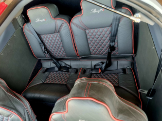 | The interior is a beautiful grey leather, with a red piping and stitching to complement the detail of this great aircraft. | |